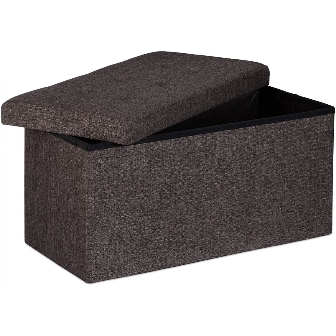 Points forts Helloshop26 Tabouret banquette pouf de rangement pliant coffre repose-pieds 76 cm lin marron 13_0002337_5