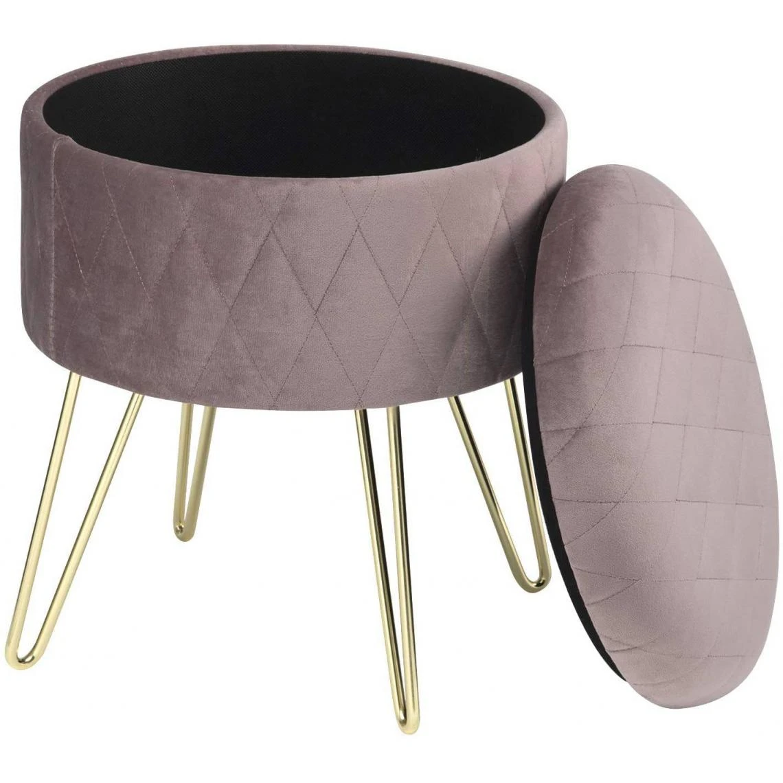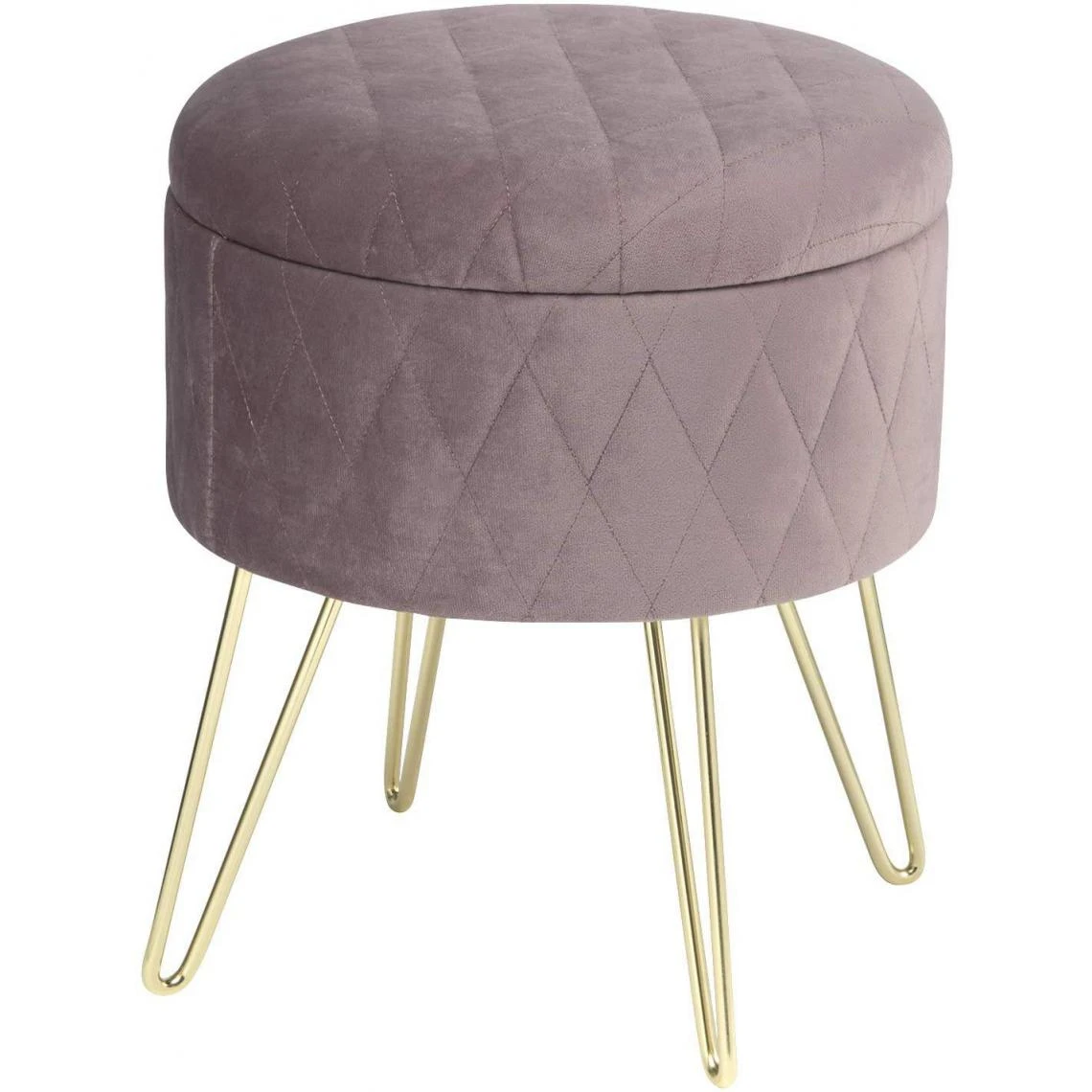 Points forts Helloshop26 Tabouret rembourré avec espace de rangement en velours rond rose 19_0000222
