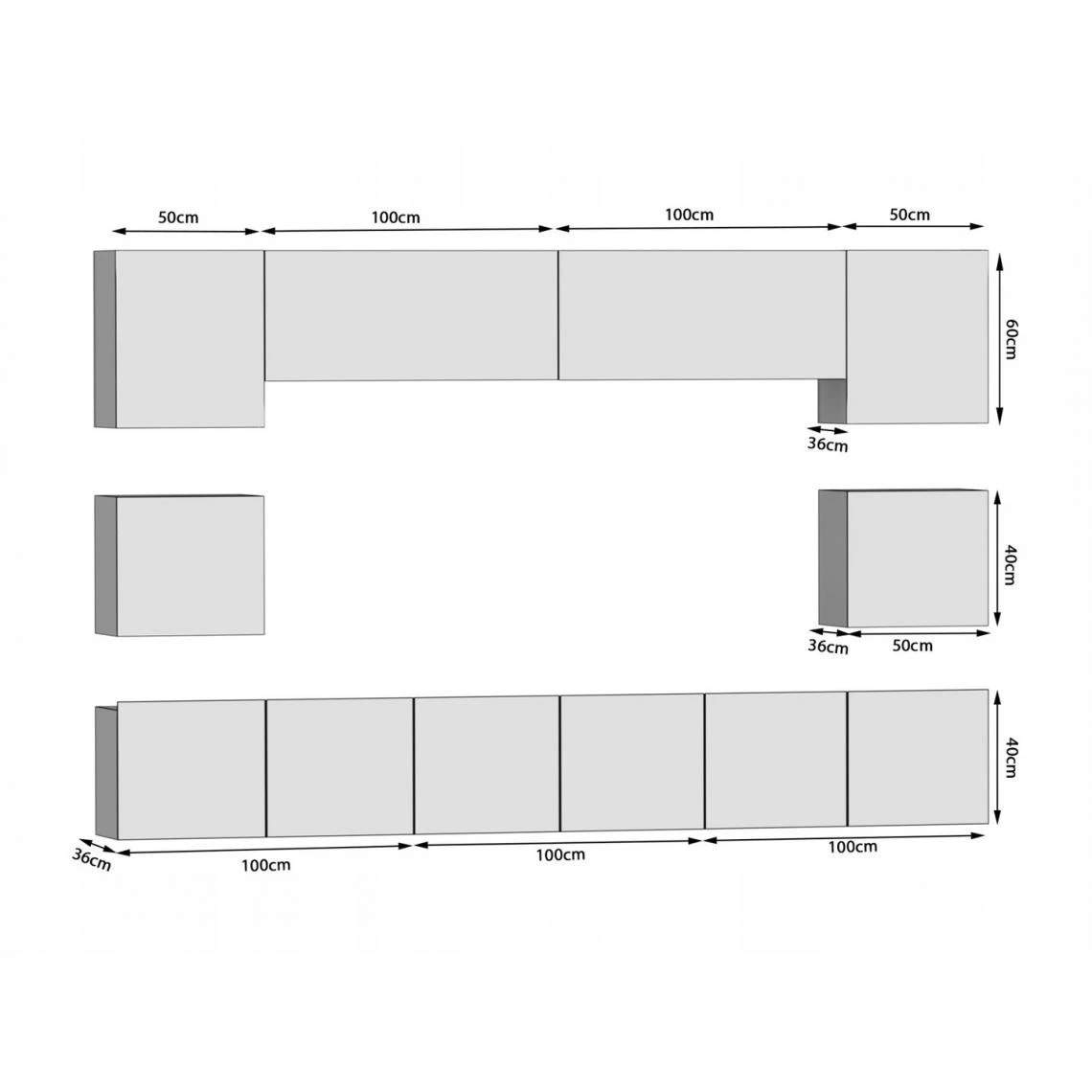L’ensemble de meubles KLARI grâce à son design intemporel et à ses couleurs tendance s’intégra parfaitement dans chaque intérieur. En plus de son allure esthétique, l’ensemble se caractérise par une grande fonctionnalité et une capacité de rangement important, POINTS FORTS: Design moderne, Grande capacité de rangement pour votre matériel audio/vidéo, Façades modernes sans poignées faciles à ouvrir, Finition: corps en blanc mat, façades en blanc brillant, Fabriqué en Europe, CARACTÉRISTIQUES TECHNIQUES: Dimensions totales meubles hauts: Largeur – 300 cm, Hauteur: 60/40 cm, Dimensions totales meubles bas: Largeur: 300 cm, Profondeur: 36 cm, hauteur: 40 cm, Structure: Panneaux de particules mélaminés Econatura, Epaisseur panneaux : 16 mm, Éclairage LED + télécommande inclus, Meuble à monter soi même, Photos des articles le plus fidèle possible, mais restant non contractuelles, les nuances de couleur et le rendu des matières présentés à l’écran pouvant être différents de la réalité
