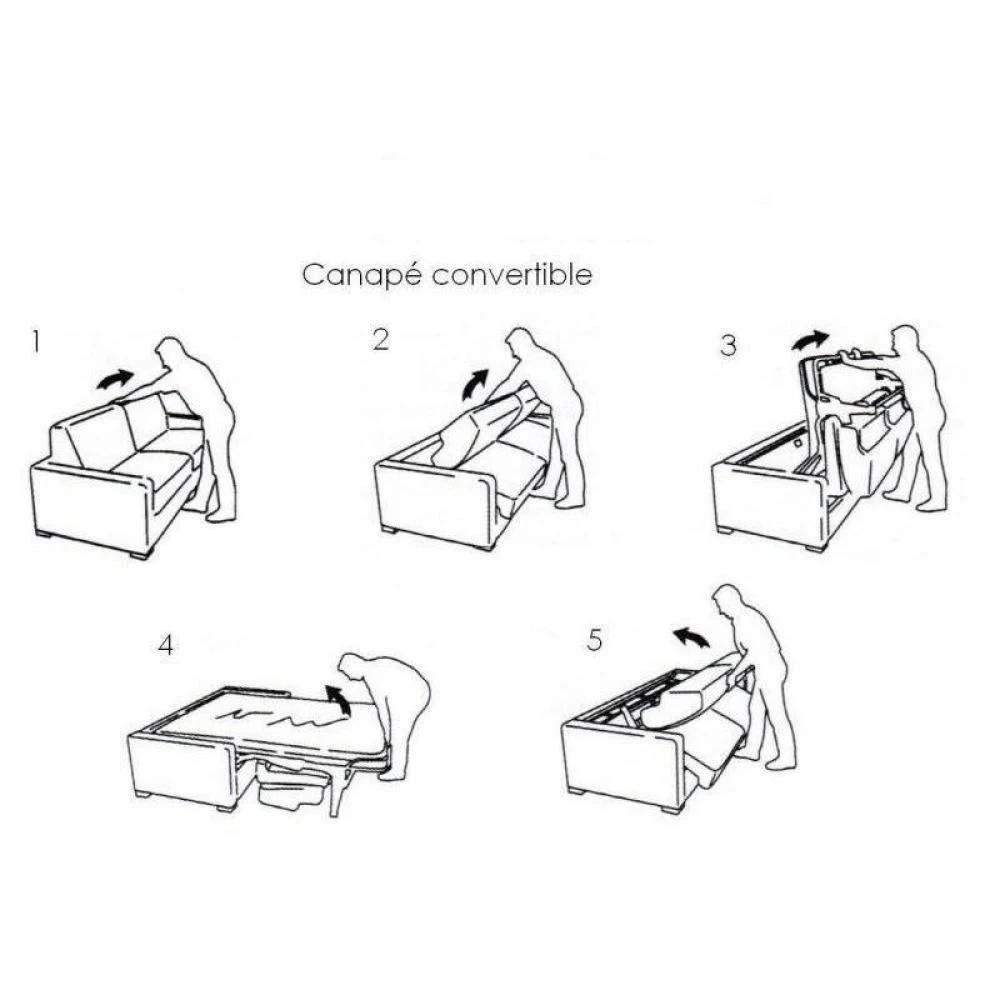 Ce canapé 3 places MASTER convertible ouverture RAPIDO dispose d’un système ouverture RAPIDO AUCUN COUSSIN A RETIRER, l’ ouverture du lit RAPIDO 140 * 200 cm se fait en quelques secondes sans enlever les coussins d’assise et de dossier.
