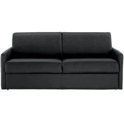 Points forts Inside 75 Canapé lit rapido SUN ELITE cuir éco noir sommier lattes 140cm assises et matelas 16cm mémoire de forme
