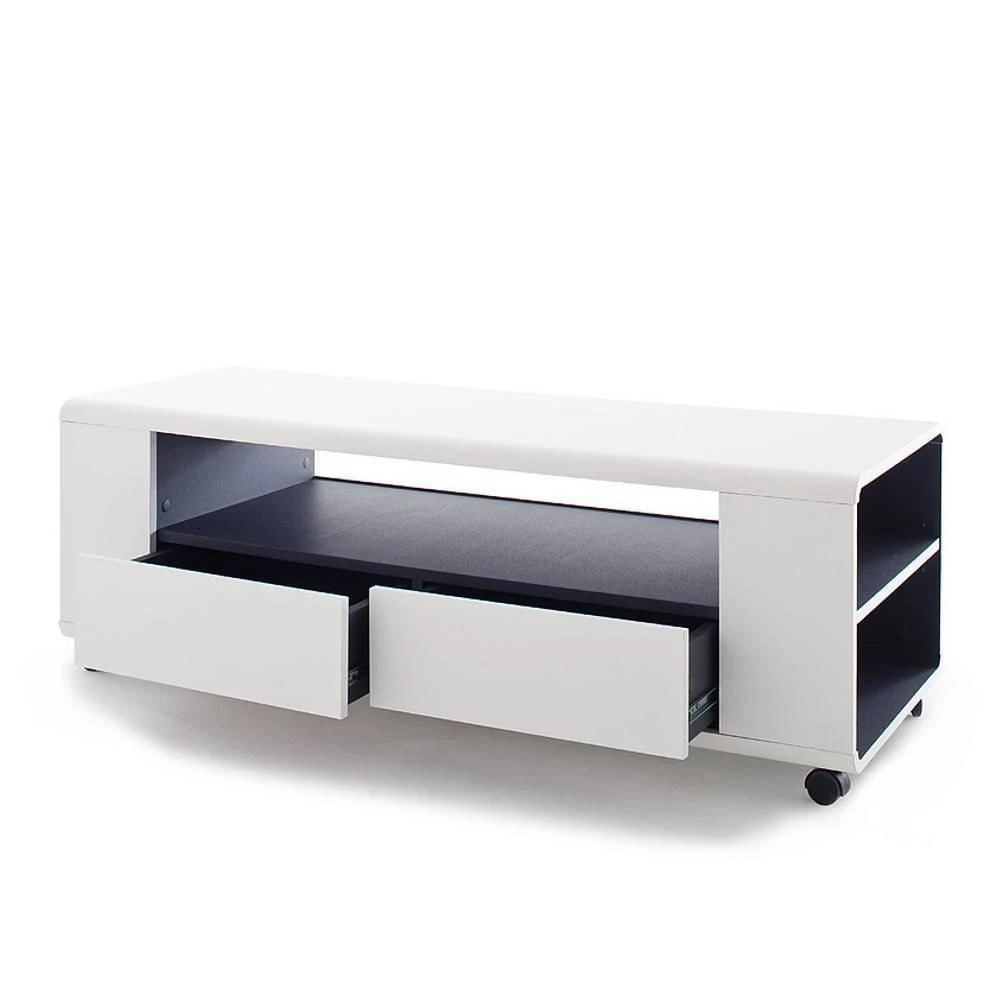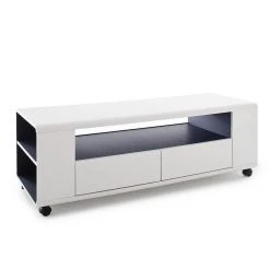 Points forts Inside 75 Meuble TV CHICAGO finition laquée blanc mat à roulettes