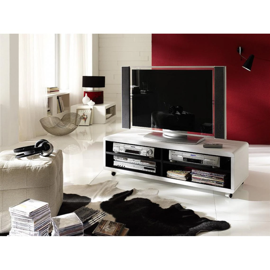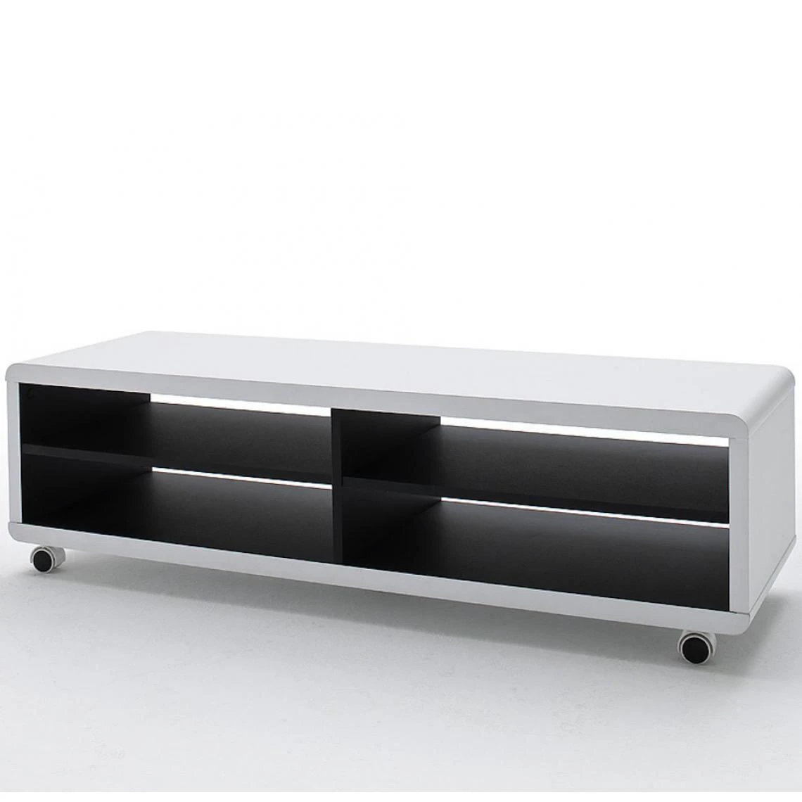 Points forts Inside 75 Meuble TV JUNAS XL laqué blanc et noir à roulettes 1 étagère