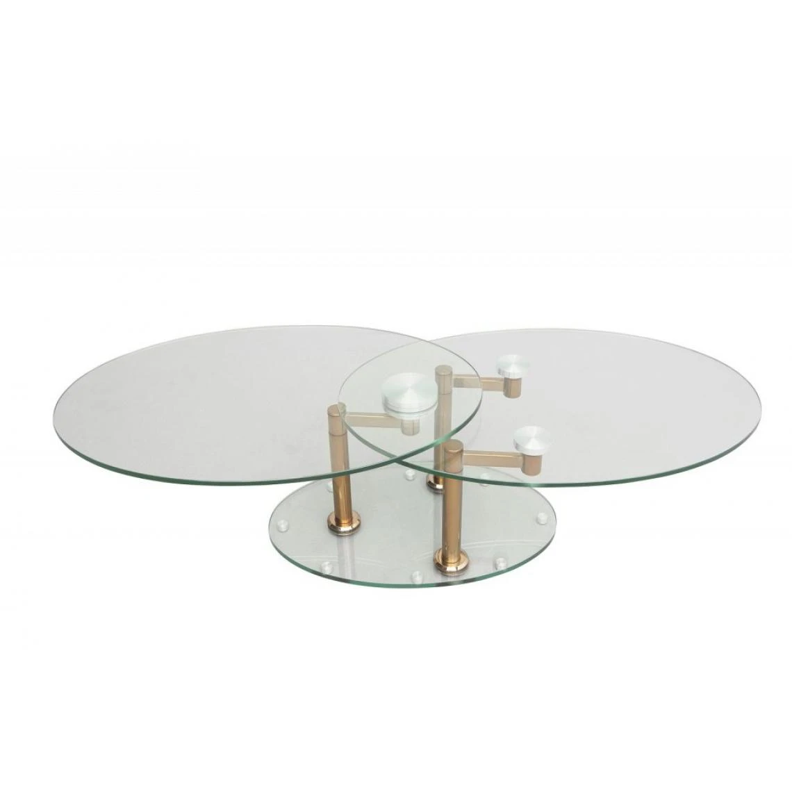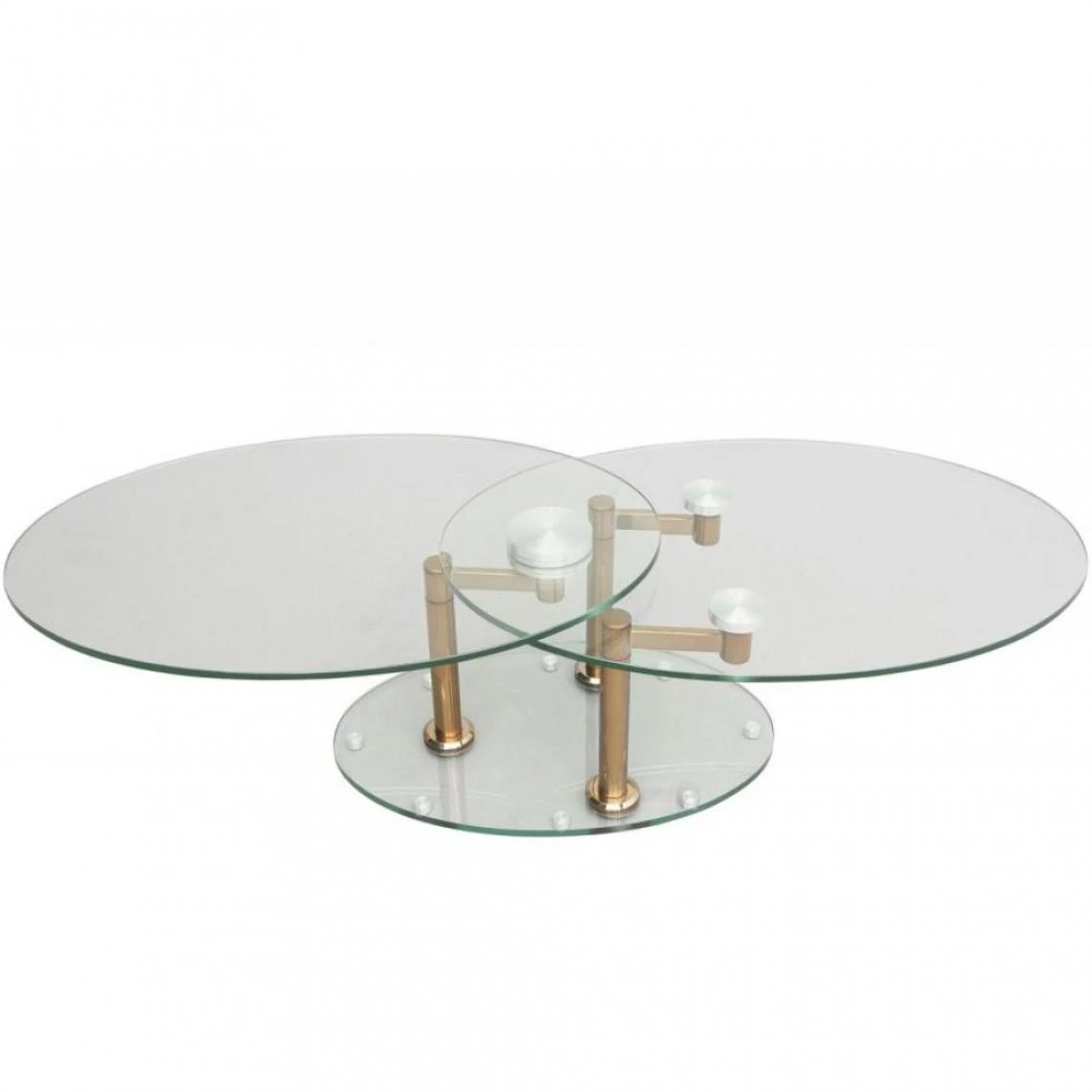 Par une simple rotation du verre supérieur, la table DOUBLE se transforme en une double table ovale