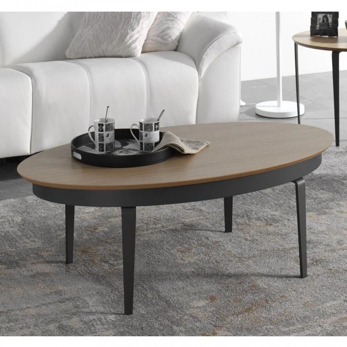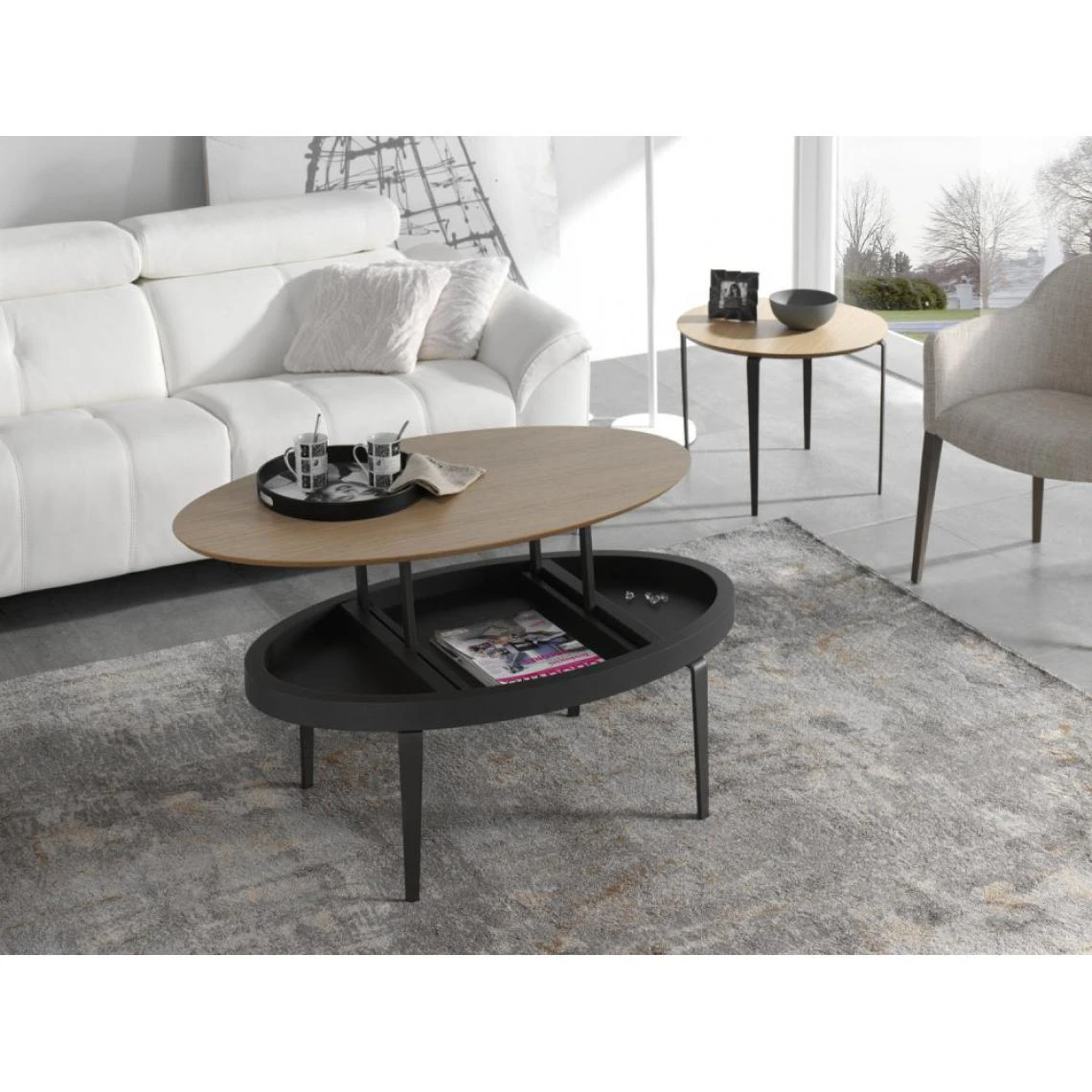 Points forts Inside 75 Table basse relevable ovale SWING 115x65cm chêne pied métal noir
