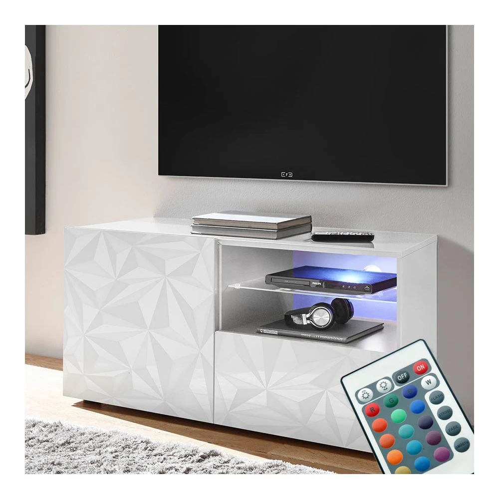 Points forts Kasalinea Meuble TV lumineux 120 cm blanc laqué design NINO