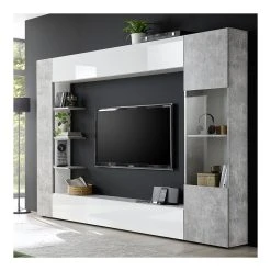 Points forts Kasalinea Meuble tv mural blanc et béton SOPRANO 2