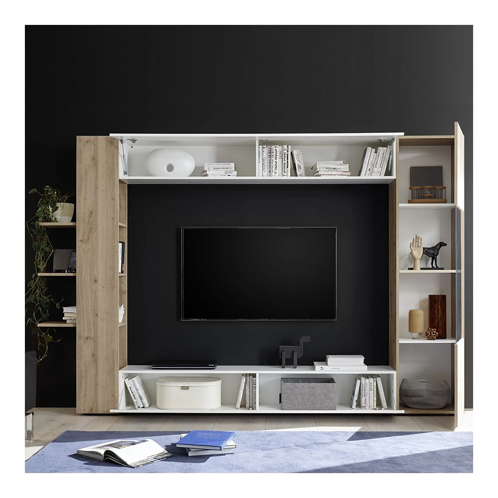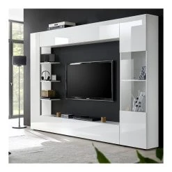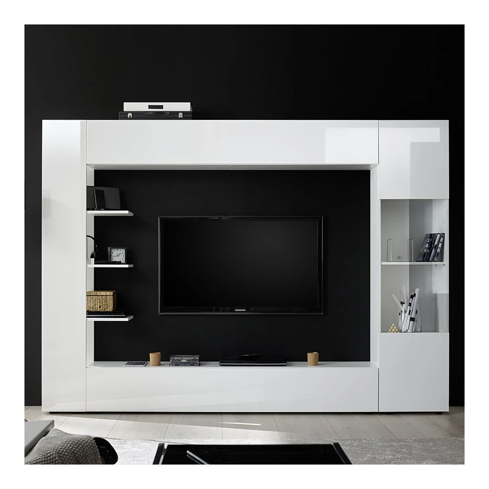 Composition : 2 meubles horizontaux + 2 colonnes de rangement.Structure: Panneaux de particules de 1ère qualité, laque high gloss traitée anti-rayure, anti-jaunissement.