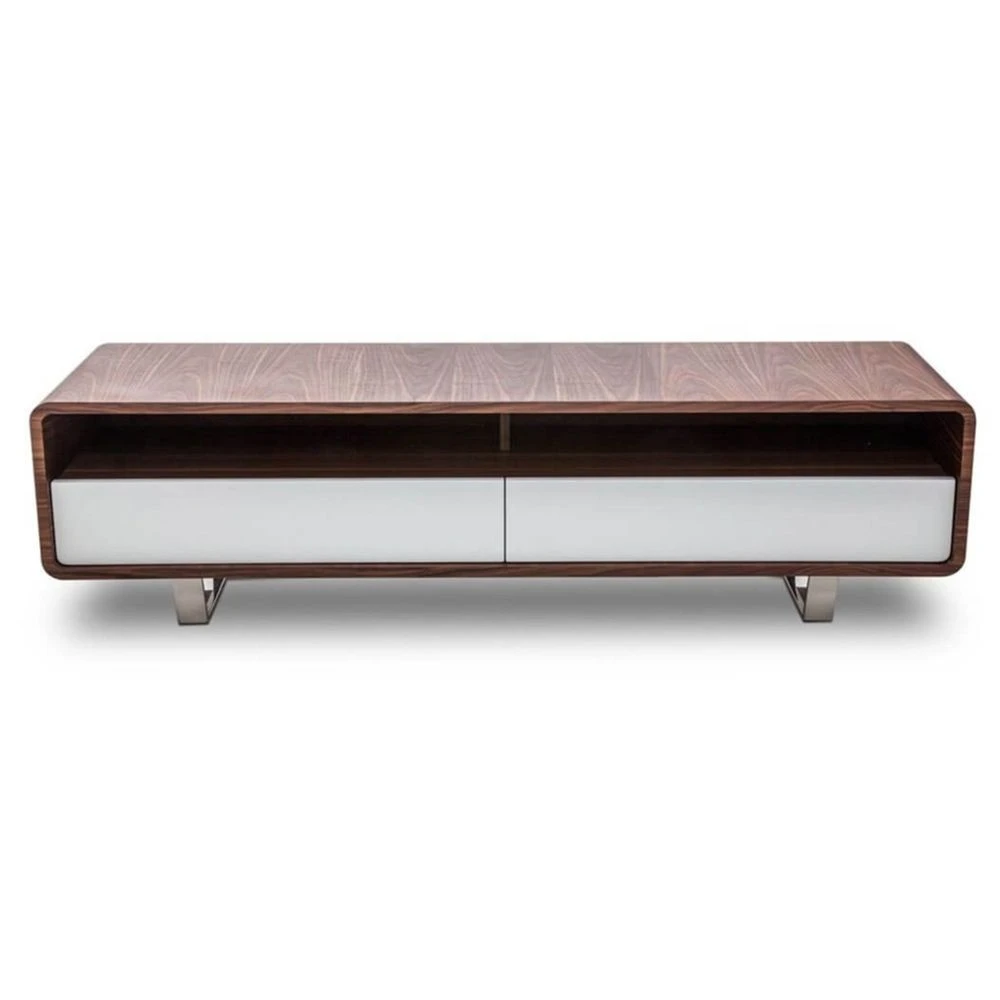Points forts La Maison Du Canapé Meuble TV bois et laqué MIA – Noyer/Blanc