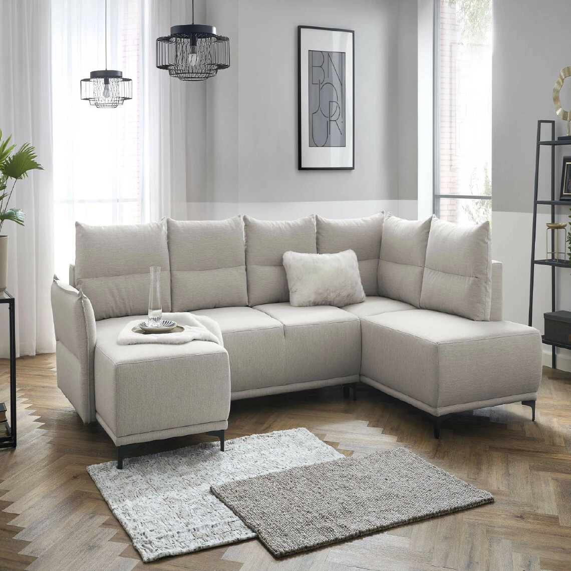 Points forts Lisa Design Canapé panoramique 7 places ARYA – Angle droit – Tissu Beige