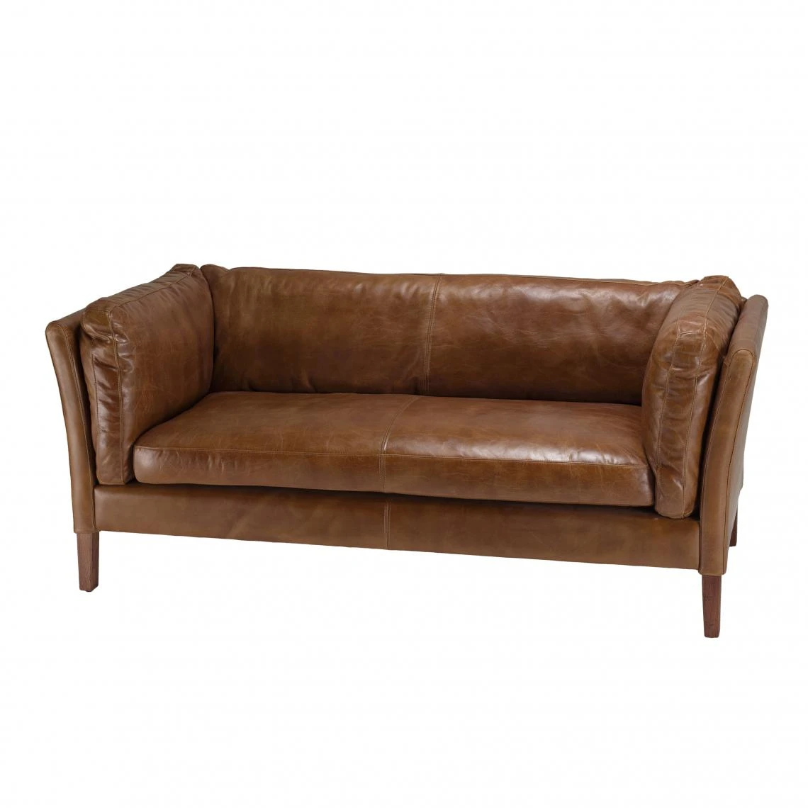 Canapé marron MILANO vintage cuir 3 places pieds bois.