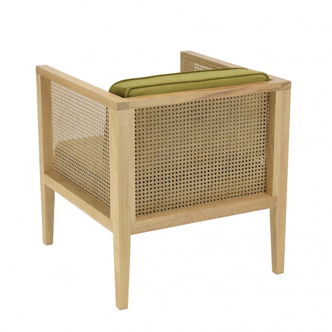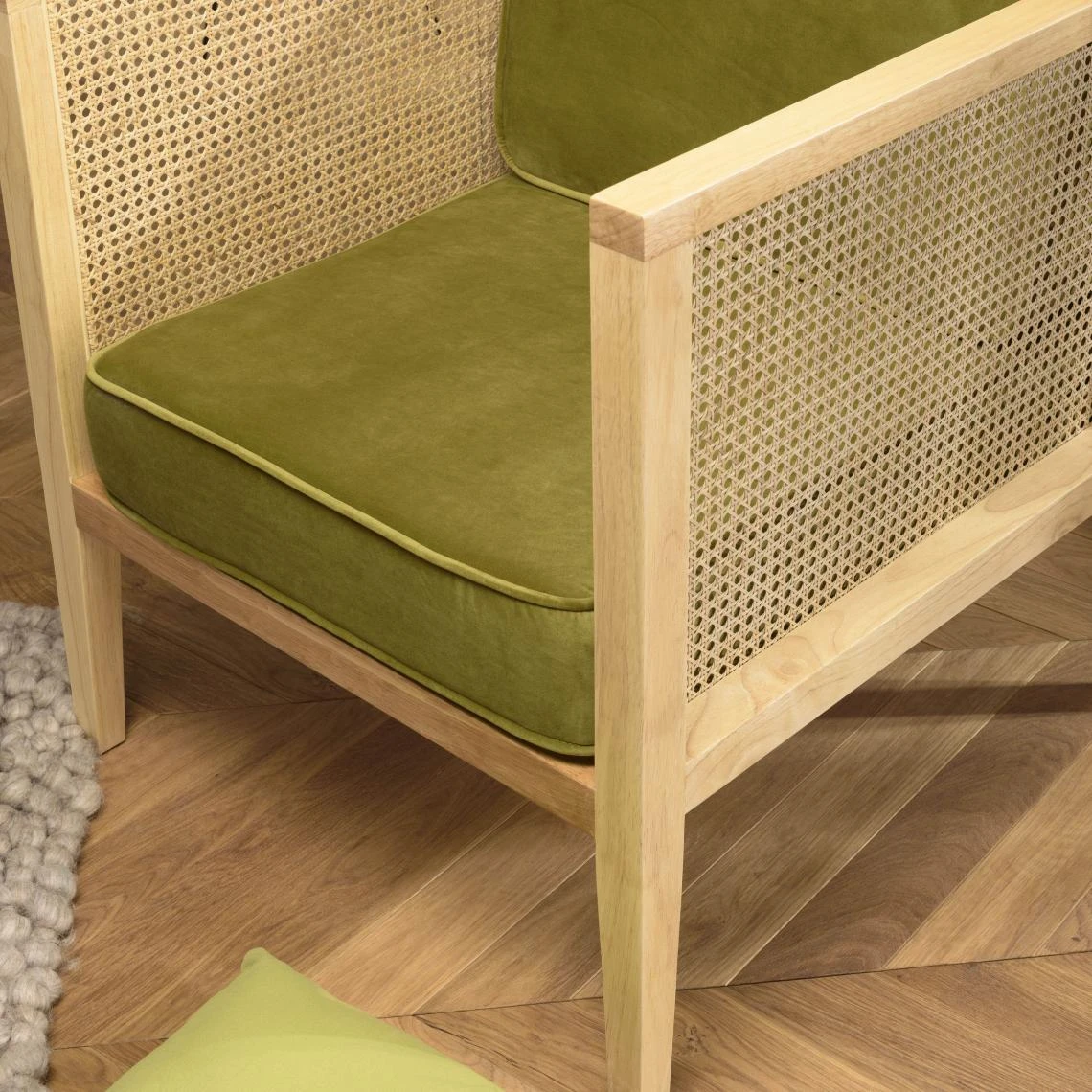 Points forts MACABANE Fauteuil cannage assise amovible velours vert