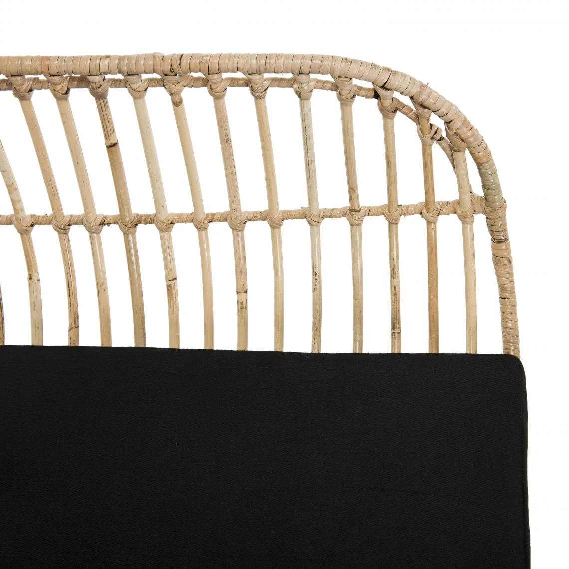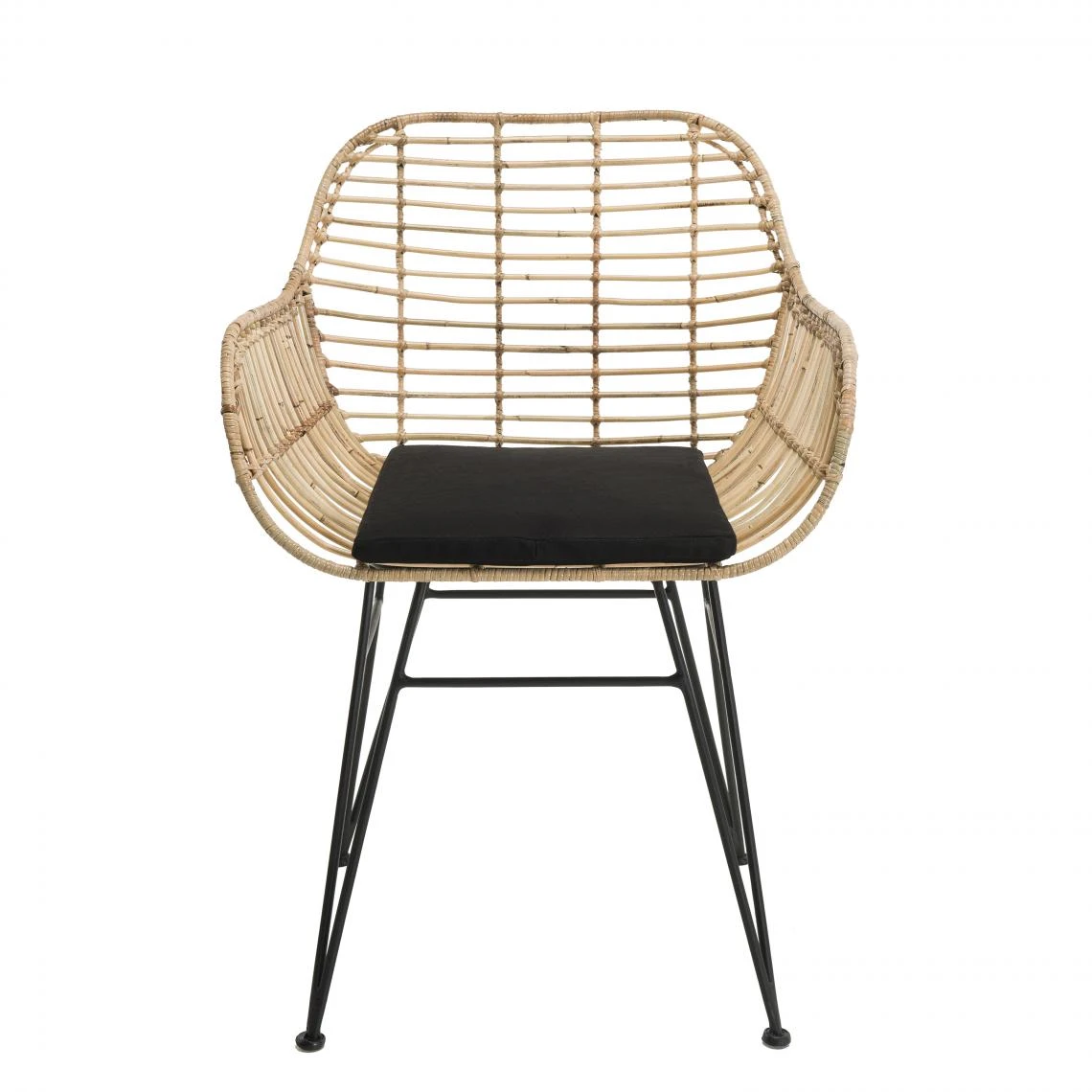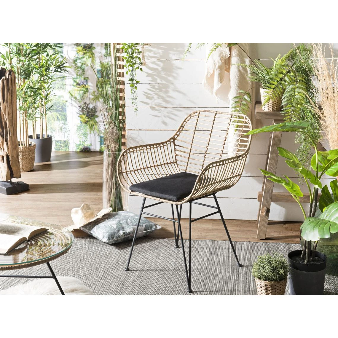 Points forts MACABANE Fauteuil CHLOE Rotin Naturel LONG ISLAND Coussin Noir Pieds Métal