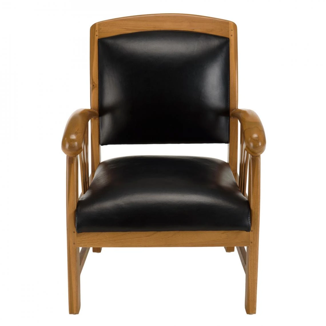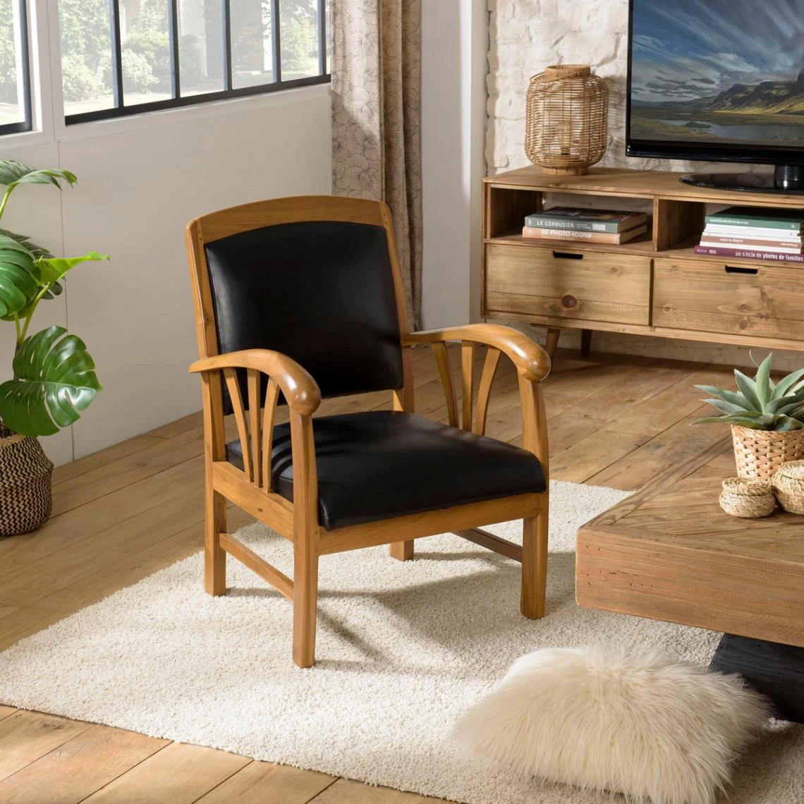 Points forts MACABANE Fauteuil en teck et cuir style colonial – Noir