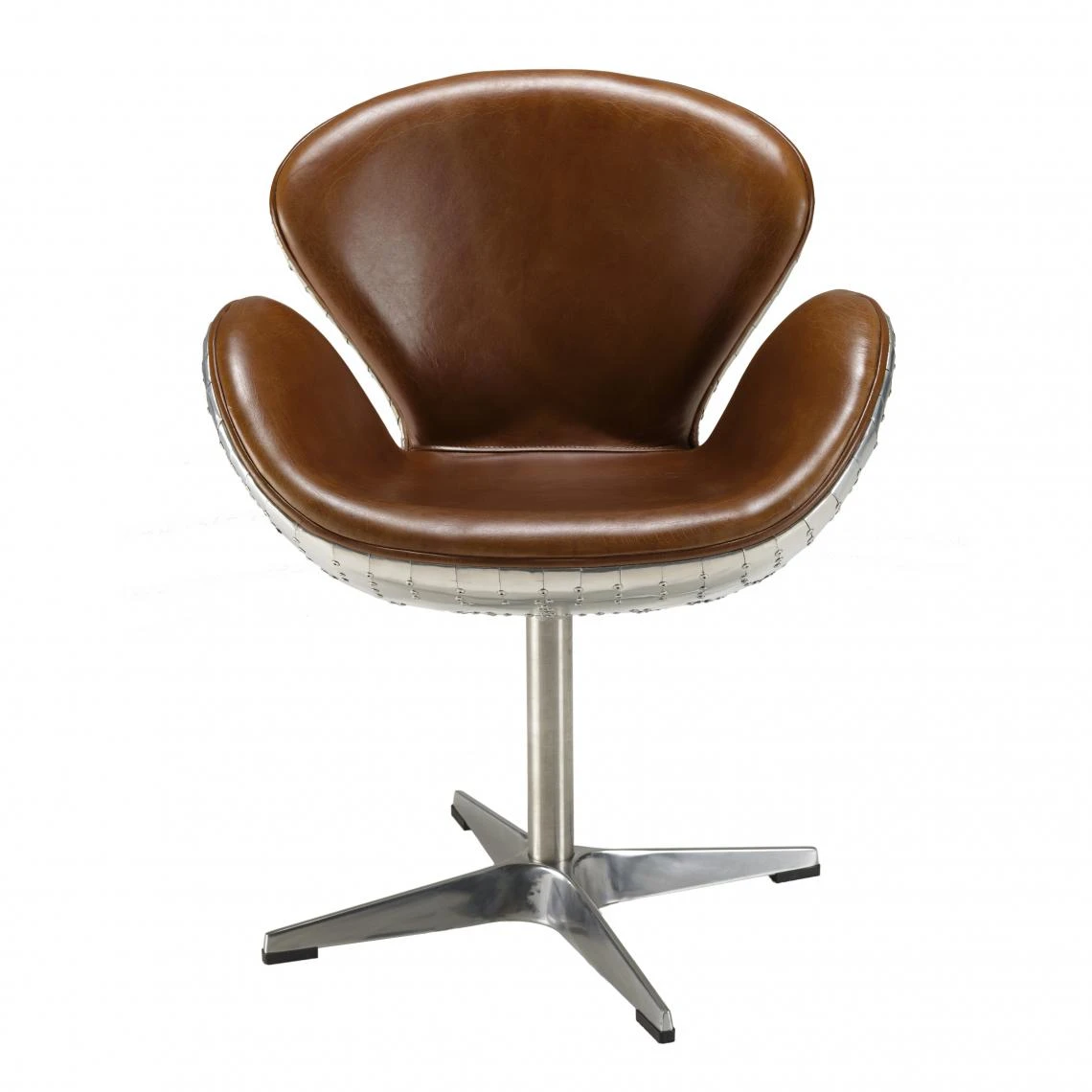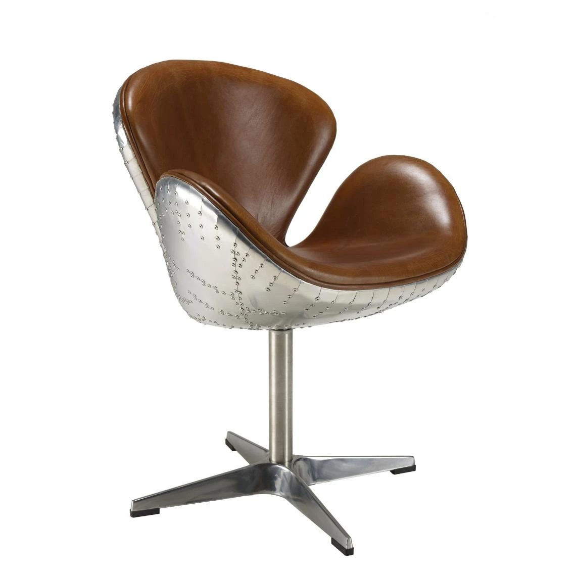 Fauteuil marron NEVADA vintage cuir pied aluminium.