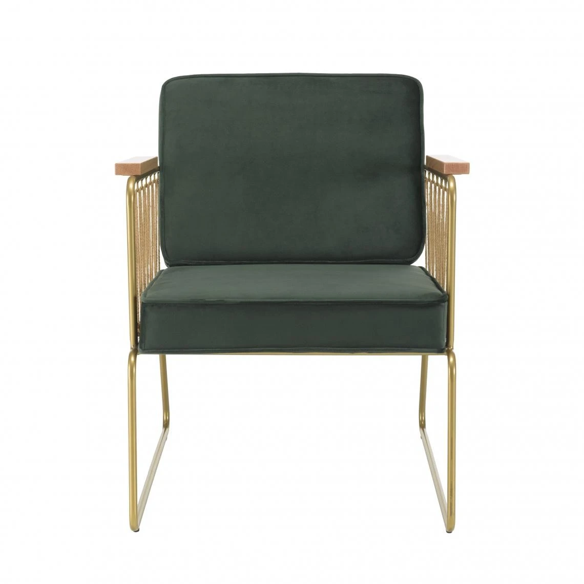 - Fauteuil velours vert foncé pieds métal doré accoudoir cordage
