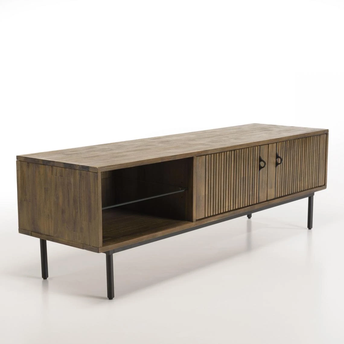 Points forts MACABANE Meuble TV 2 Portes 1 Niche Acacia Pieds Métal GINO