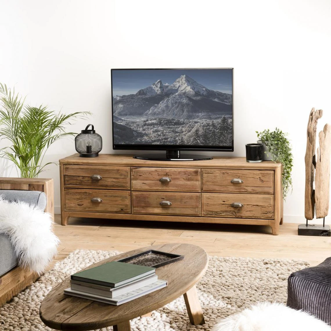 Points forts MACABANE Meuble TV ANDRIAN 6 Tiroirs Bois Pin Recyclé