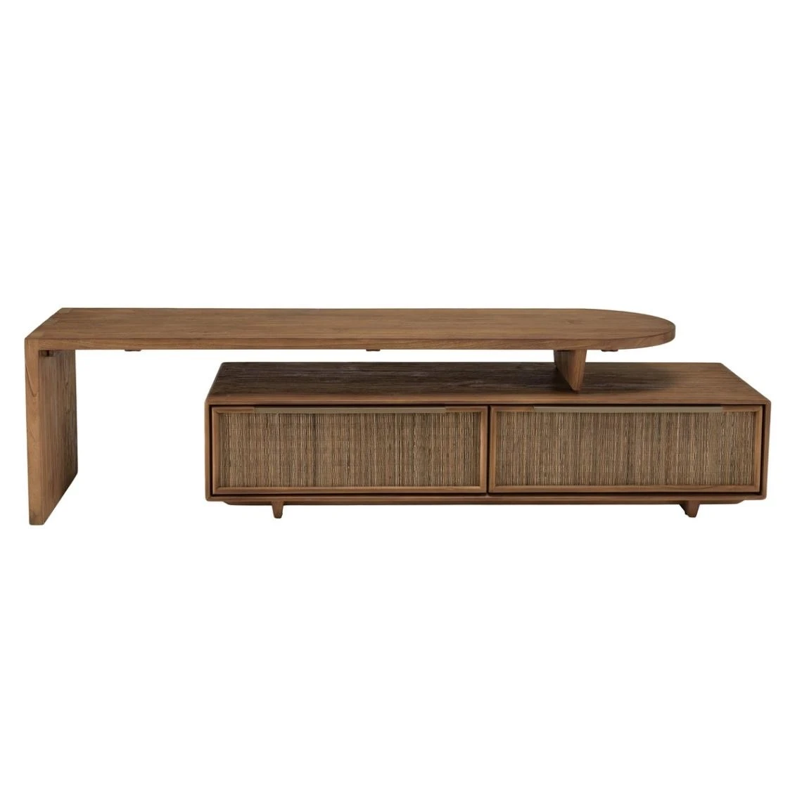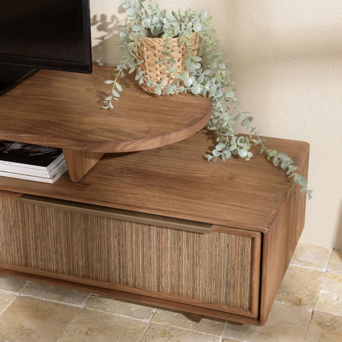 Points forts MACABANE Meuble TV modulable 140x40cm 2 tiroirs en bois teck recyclé