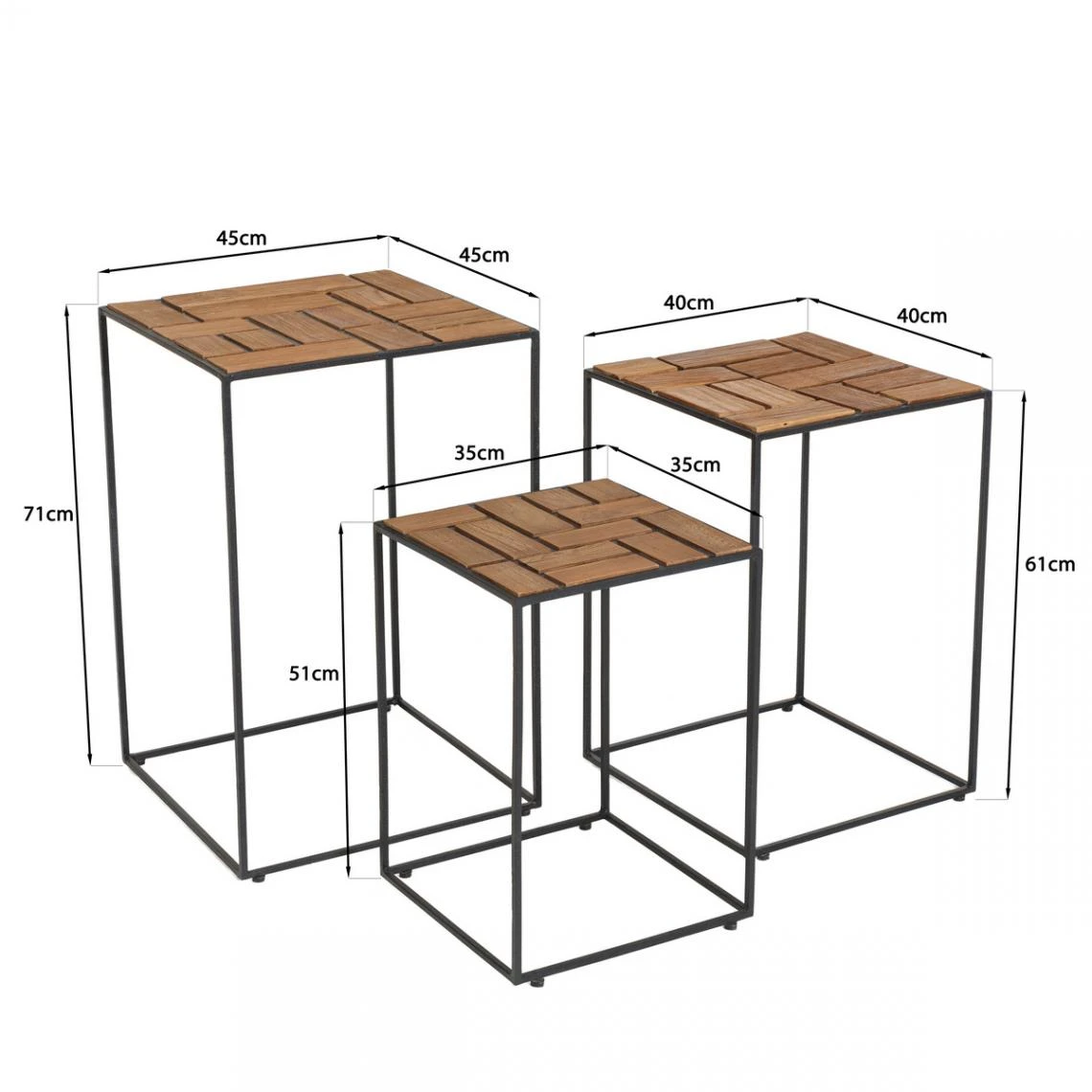 Utilisé ensemble ou séparément, ce Set de 3 tables d’appoint gigogne SIXTINE trouve aisément place dans tout style de décor. Chaque pièce allie structure en métal et plateau en teck pour offrir un rendu hyper élégant.