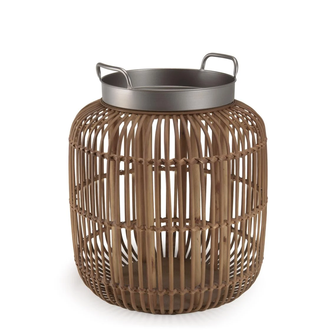 Points forts MACABANE Table d’appoint avec poignées plateau métal noir pieds rotin VICTOIRE