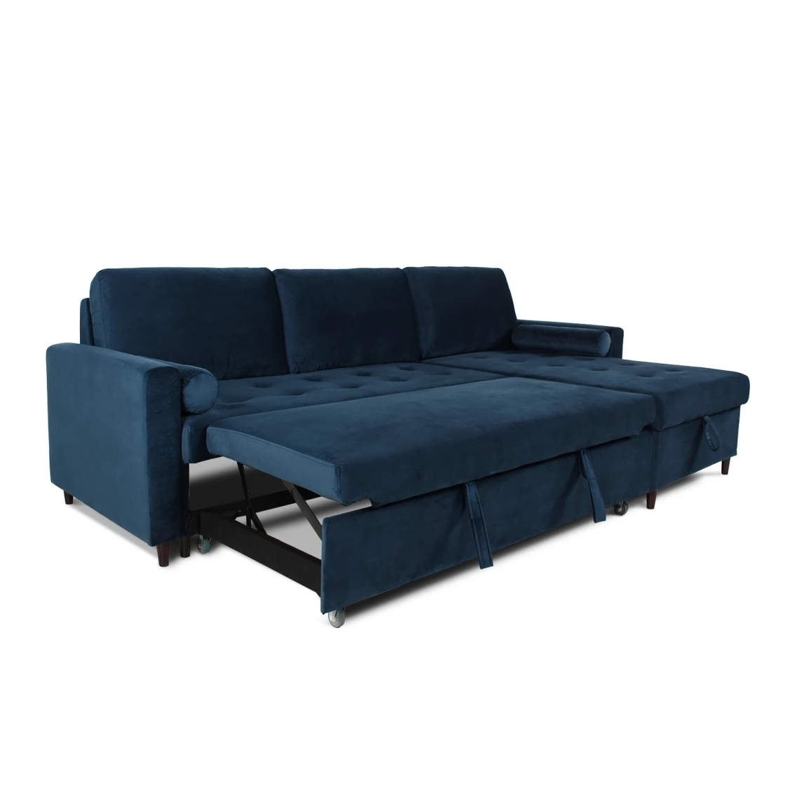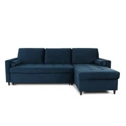 Points forts marque generique Canapé d’angle convertible réversible Claudio en velours bleu foncé