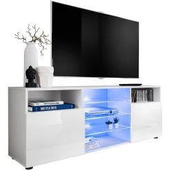 Points forts marque generique Extreme Furniture T38 Meuble télé | Meuble télé avec 3 étagères en verre & 2 portes | LED | Design moderne | Rangement pratique