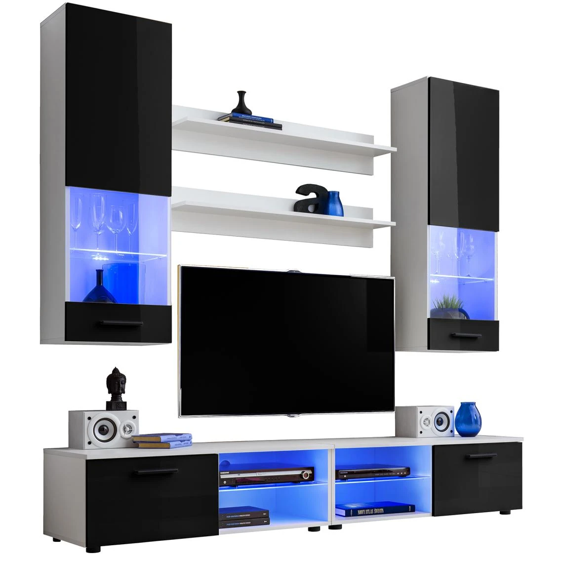 Points forts marque generique Extreme Furniture Vida Ensemble de meubles | Ensemble de meubles de salon: 2 meubles télé, 2 vitrines suspendues & 2 étagères murales | LED | Design moderne | Rangement pratique