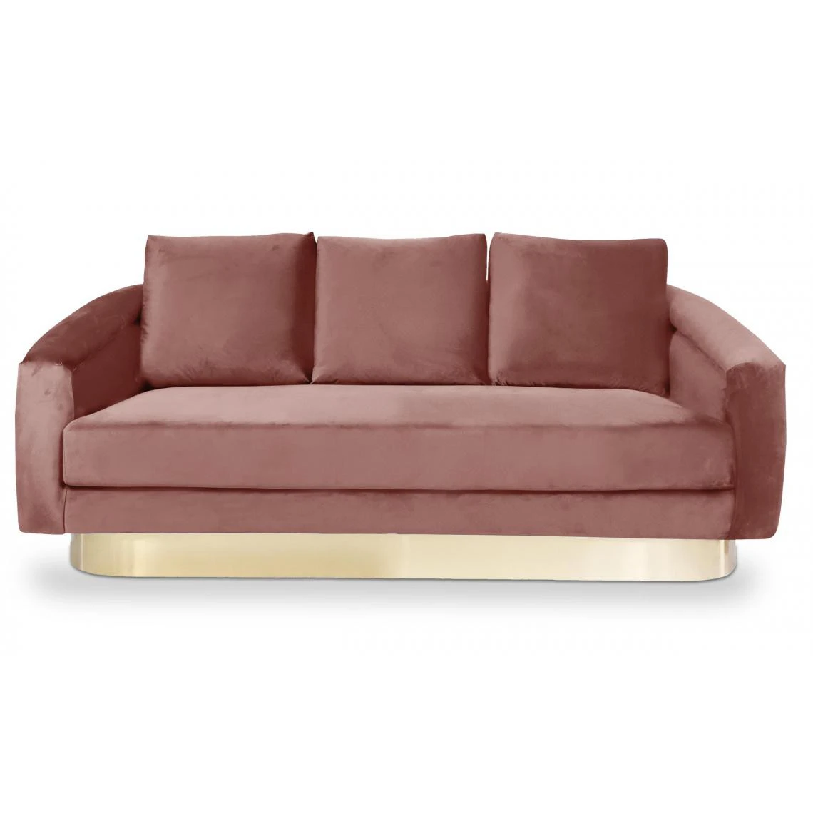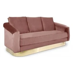 Surélevé par un pied en métal doré qui fait tout le tour de sa base, ce canapé trois places est non seulement très stable mais aussi très raffiné.