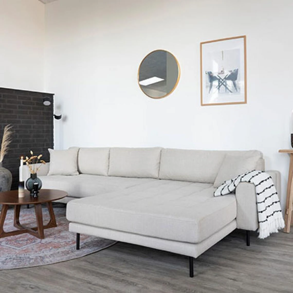 Points forts Mes Canapé d’angle à droite 290×92/170×76 cm en tissu beige – VANEA