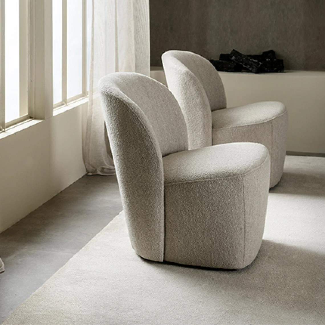 Matière : revêtement en tissu bouclé polyester, rembourrage en mousse T3542 et T2130 et structure en bois dur, panneaux de particules et contreplaqué