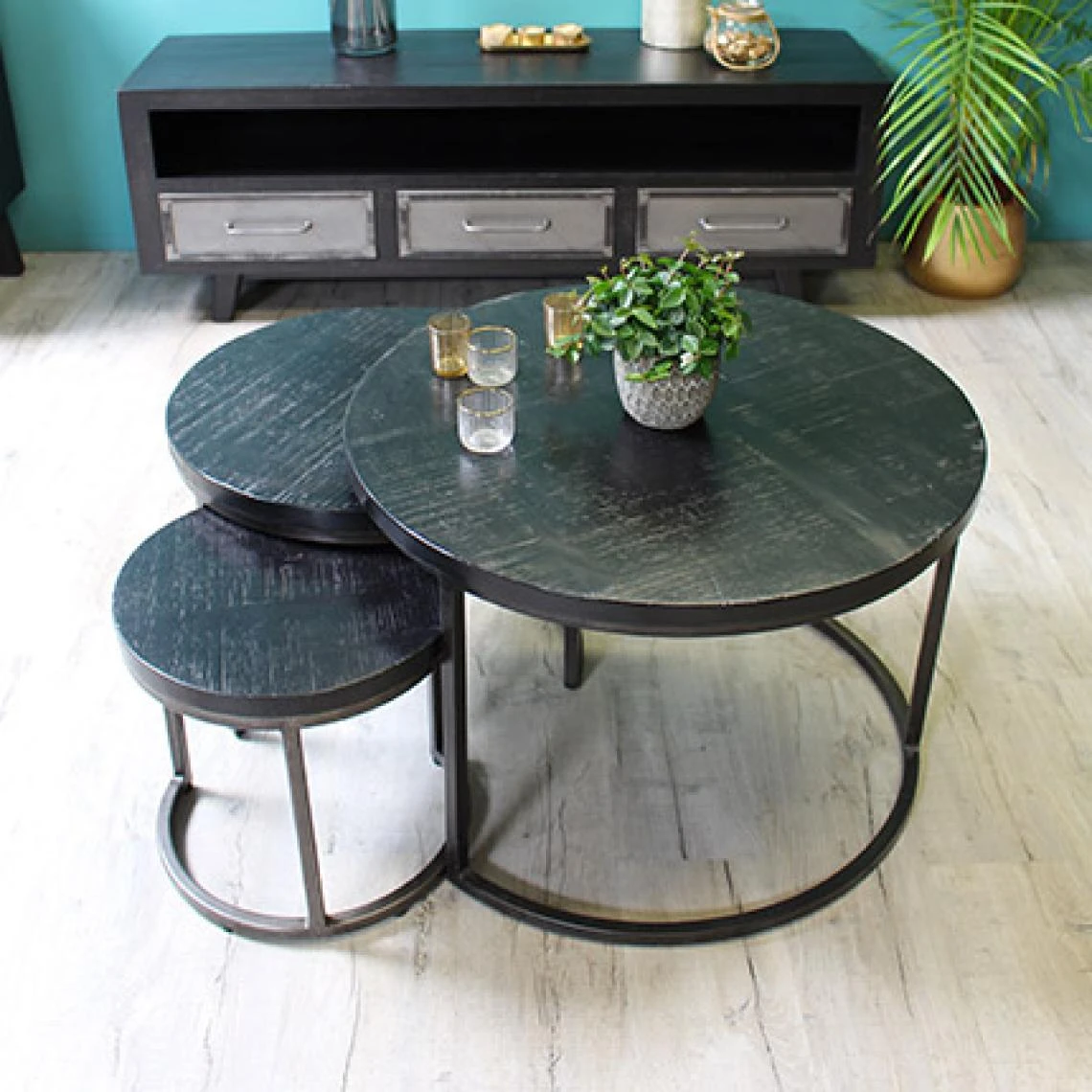 Points forts Mes Lot de 3 tables rondes en manguier et métal noir vieilli – GUSTAF