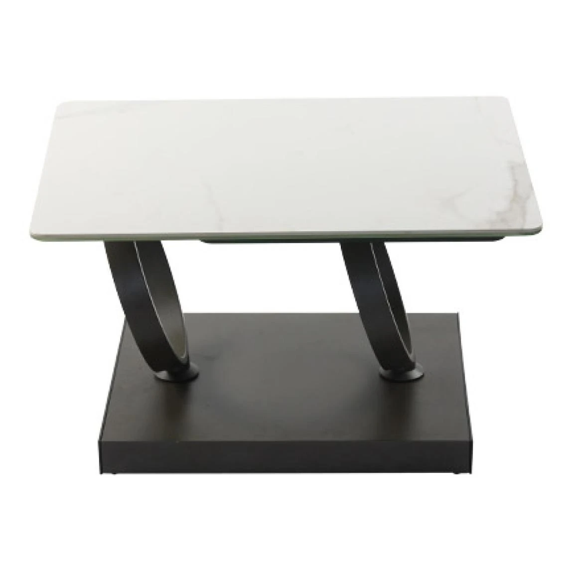 Admirez cette table basse avec double plateau en marbre blanc de haute qualité idéale pour maintenir un mobilier de longue durée de vie. Son design incliné et stable lui confère un aspect agréable à observer. La finition laquée de ses montantes et de son socle lui offre une bonne protection contre les rayures et griffures. Sa surface en marbre poli fait ressortir toute la luminosité de votre pièce et la rend plus gaie. Ses formes régulières sont mises en avant dans le style décoratif contemporain. Son format compact est un atout non négligeable qui augmente sa maniabilité.