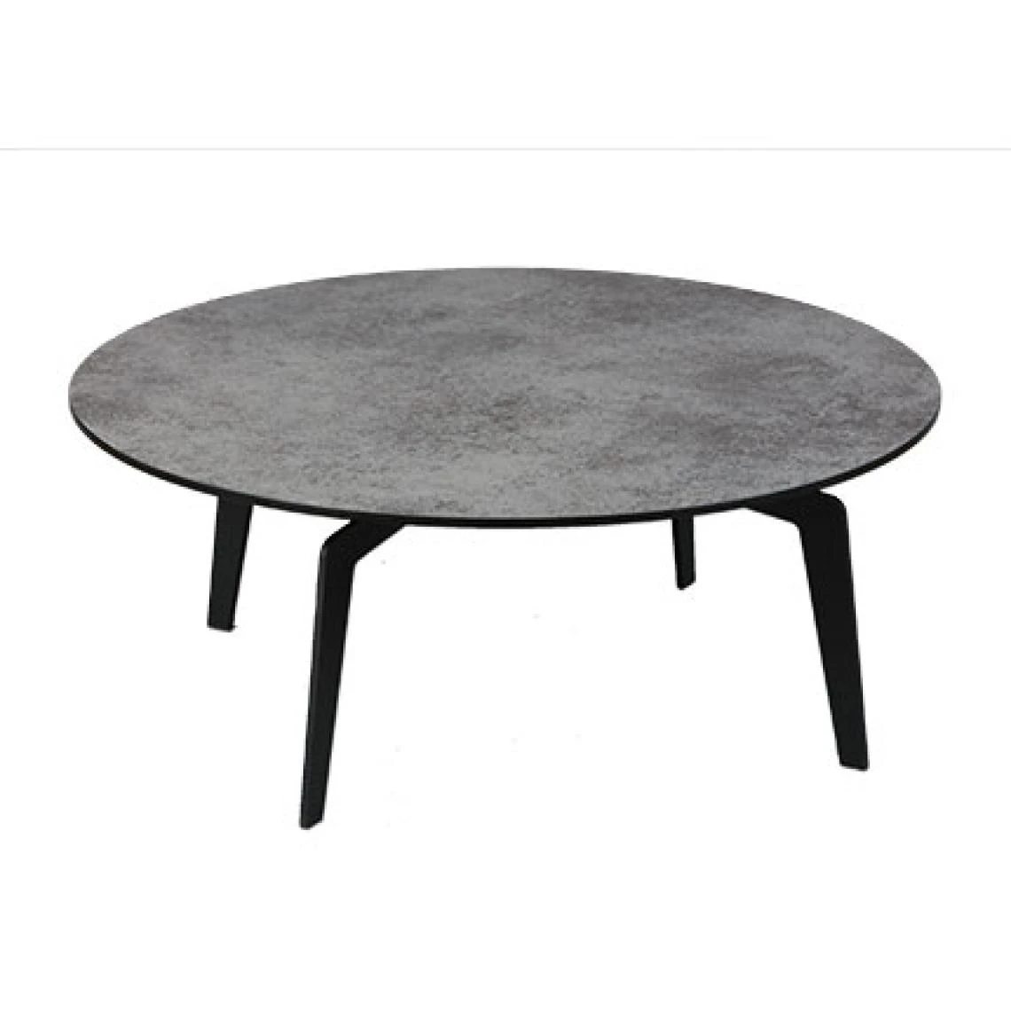 Points forts Mes Table basse ronde 90 cm avec plateau en verre aspect céramique grise