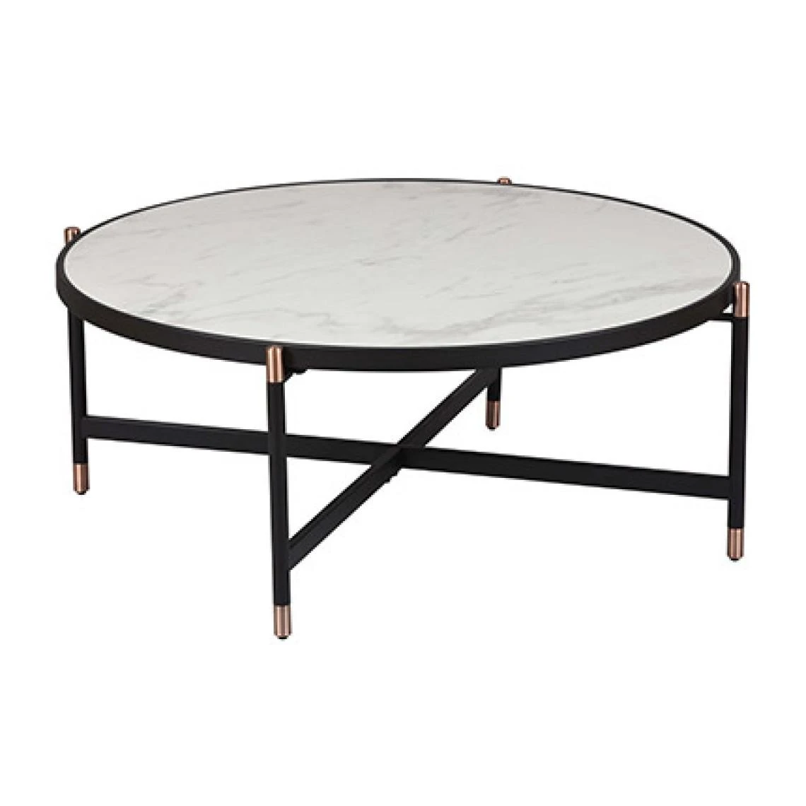 Points forts Mes Table basse ronde 90×38 cm avec plateau aspect marbre blanc
