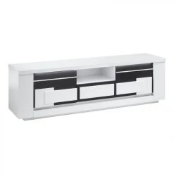 Porte :2.Avec fermeture ralentisseur soft close. . Teinte :blanc/ gris anthracite. . Tiroir :1.Charge maxi: 4Kg. Avec fermeture ralentisseur soft close. . Finition :laqué haute brillance. . Garantie :2 ans, pièces. . Structure : en panneau de particule plaquage mélaminé,ép.18mm et plateau 36mm . . Charge maxi TV :50 Kg. . A monter soi-même. . Dimensions en cm :L.170-H.50-P.40. . Lumière d’ambianceEclairage LED blanche intégré. . Taille diagonale max écran (cm/pouce) :165 cm(60″). . Dispo pcs détachées donnée fournisseur : 2 ans. .