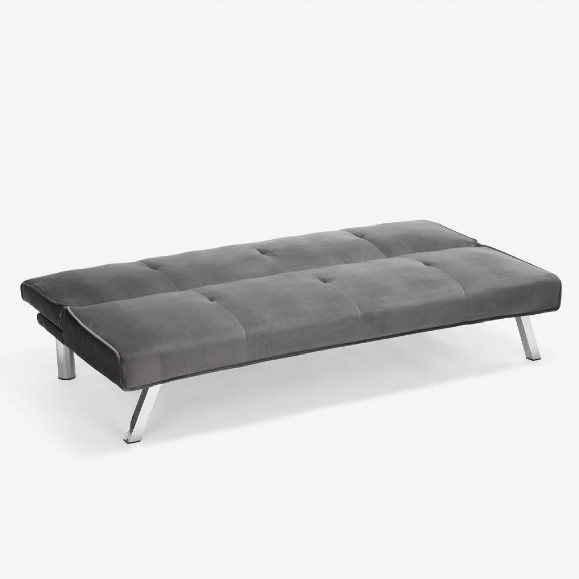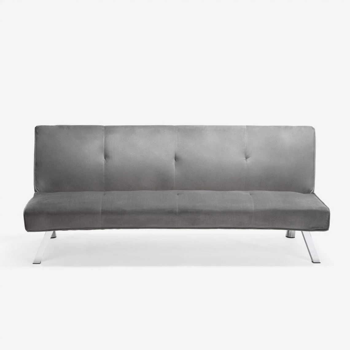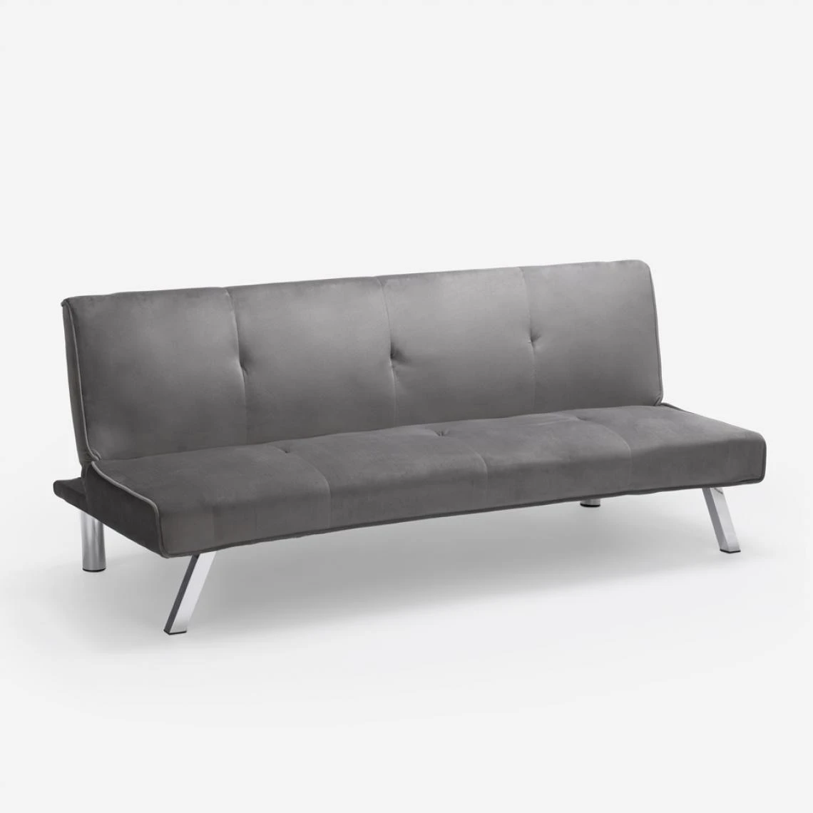 Points forts Modus Sofà Canapé convertible 3 places design tissu velours inclinable clic clac Explicitus | Couleur: Gris foncé