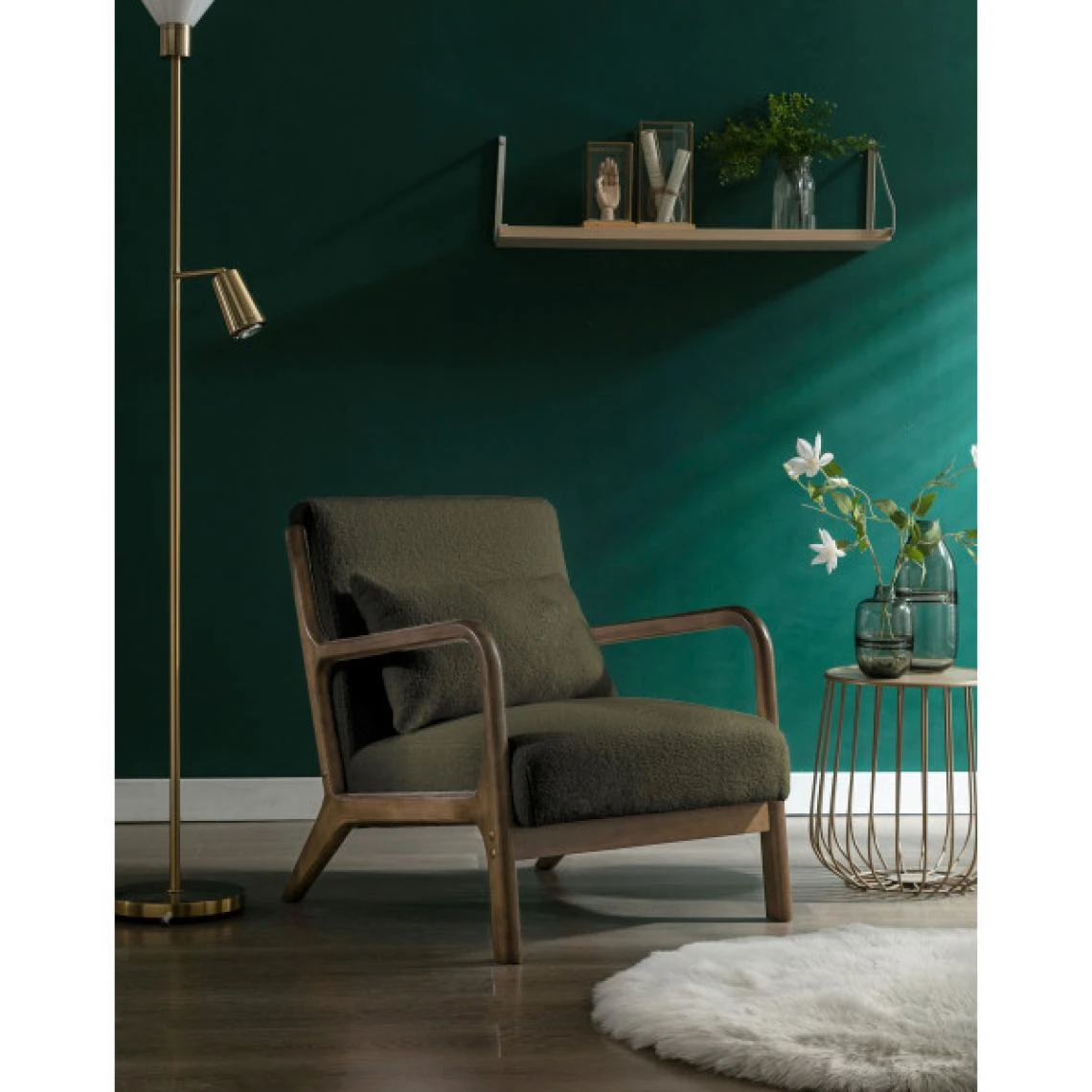 Points forts Moloo ZACK – Fauteuil lounge avec coussin Bouclette Army et bois teinté noyer