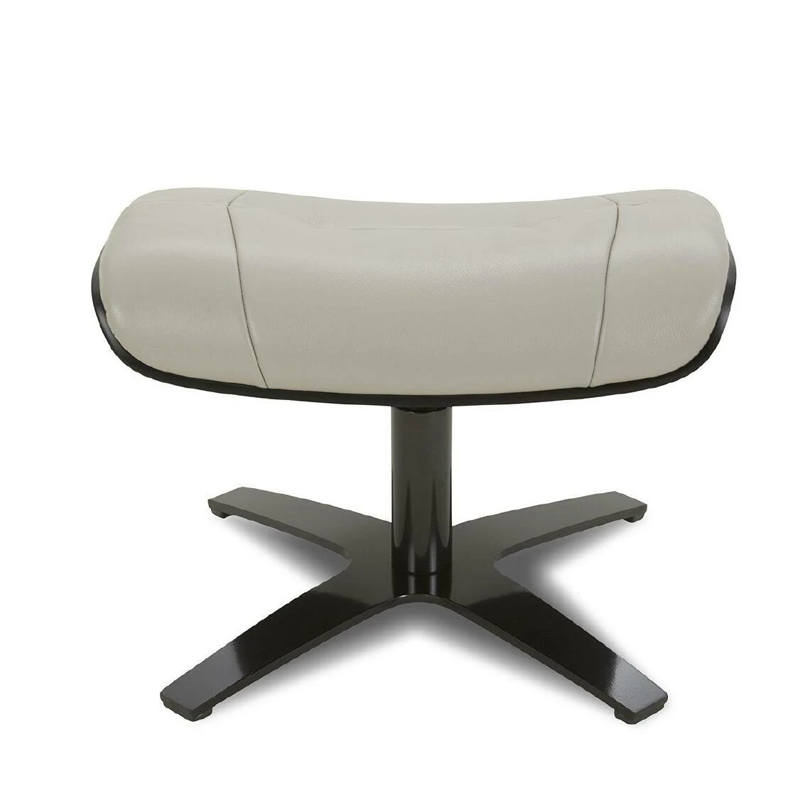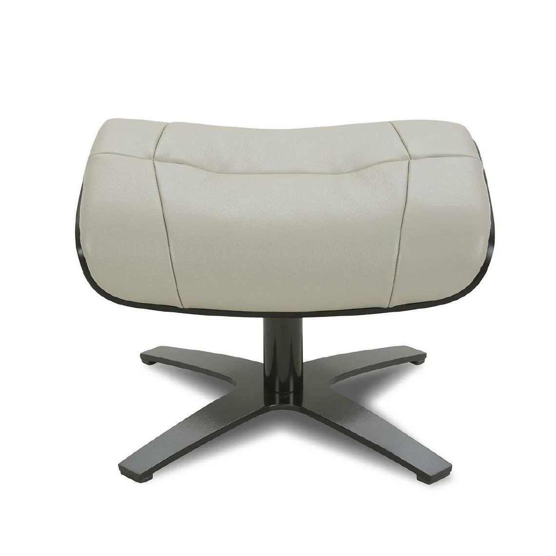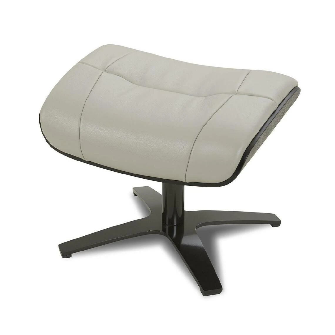 Piètement étoile à 4 rayons, est en acier gris anthracite anodisé permettant une très grande stabilité. Ce pouf est associé au fauteuil NAOS Cuir Gris en Chêne Noir.
