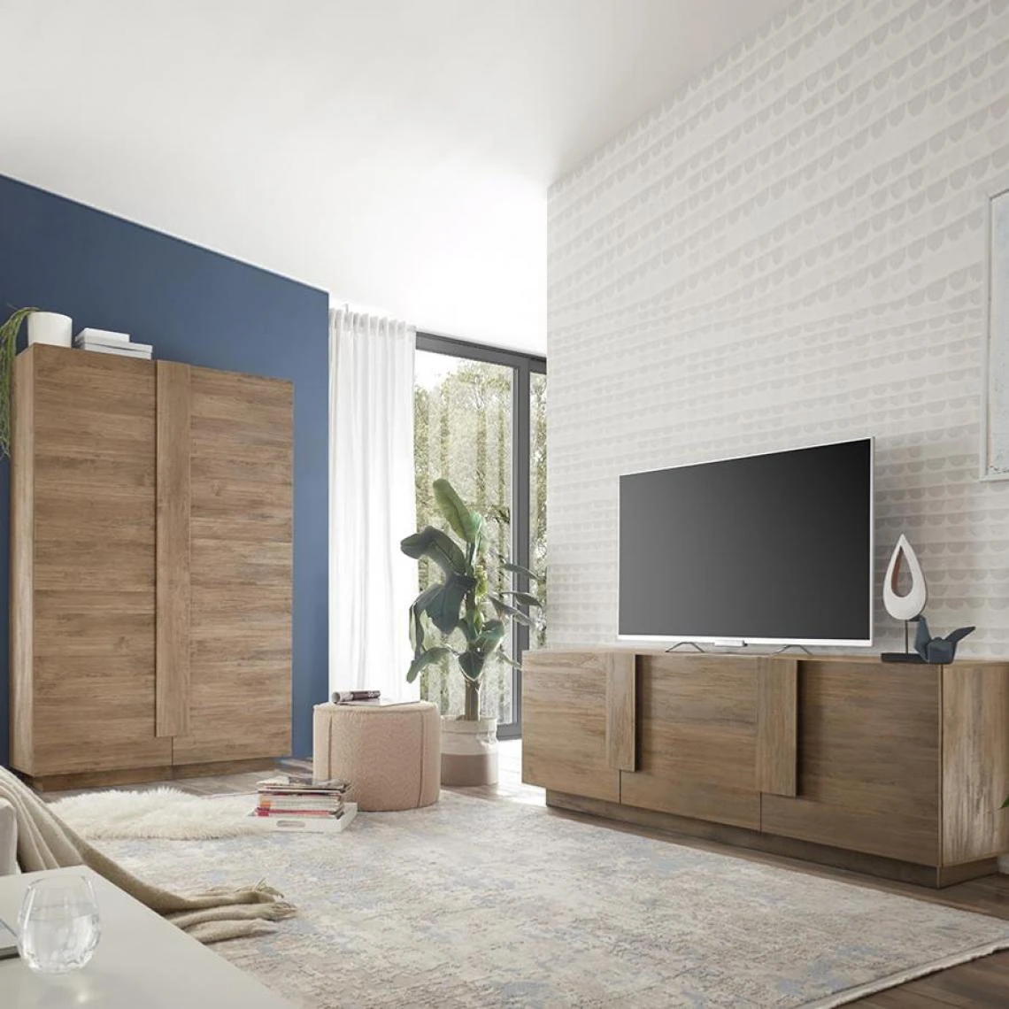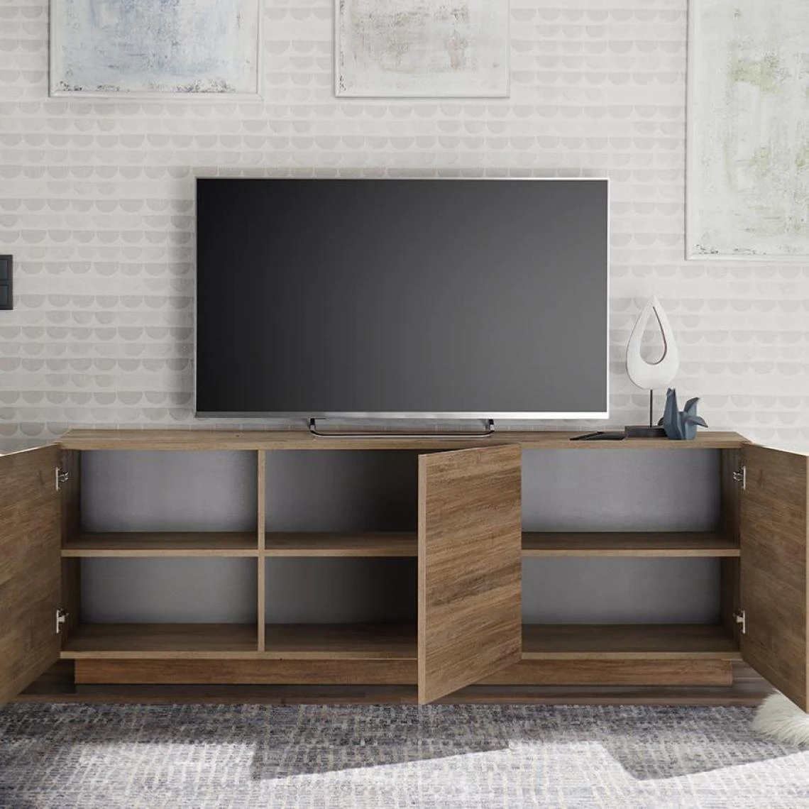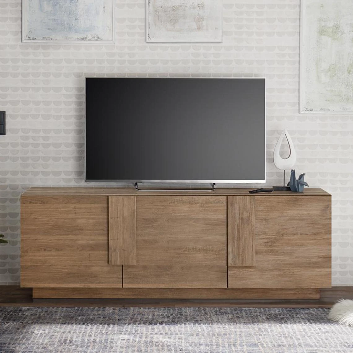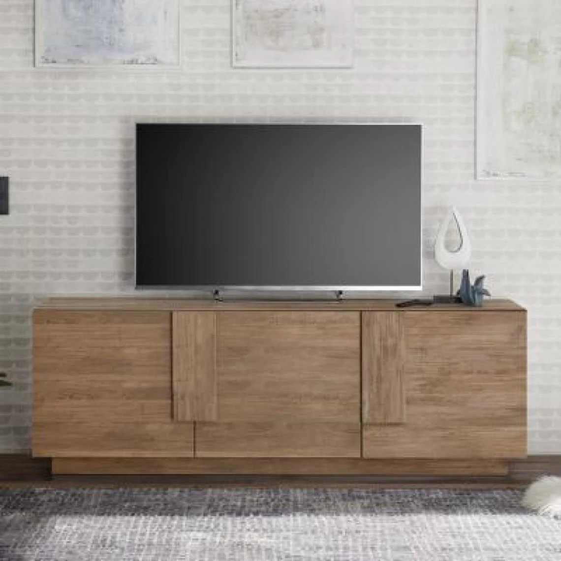 Points forts Nouvomeuble Banc TV 3 portes contemporain couleur chêne JUNON