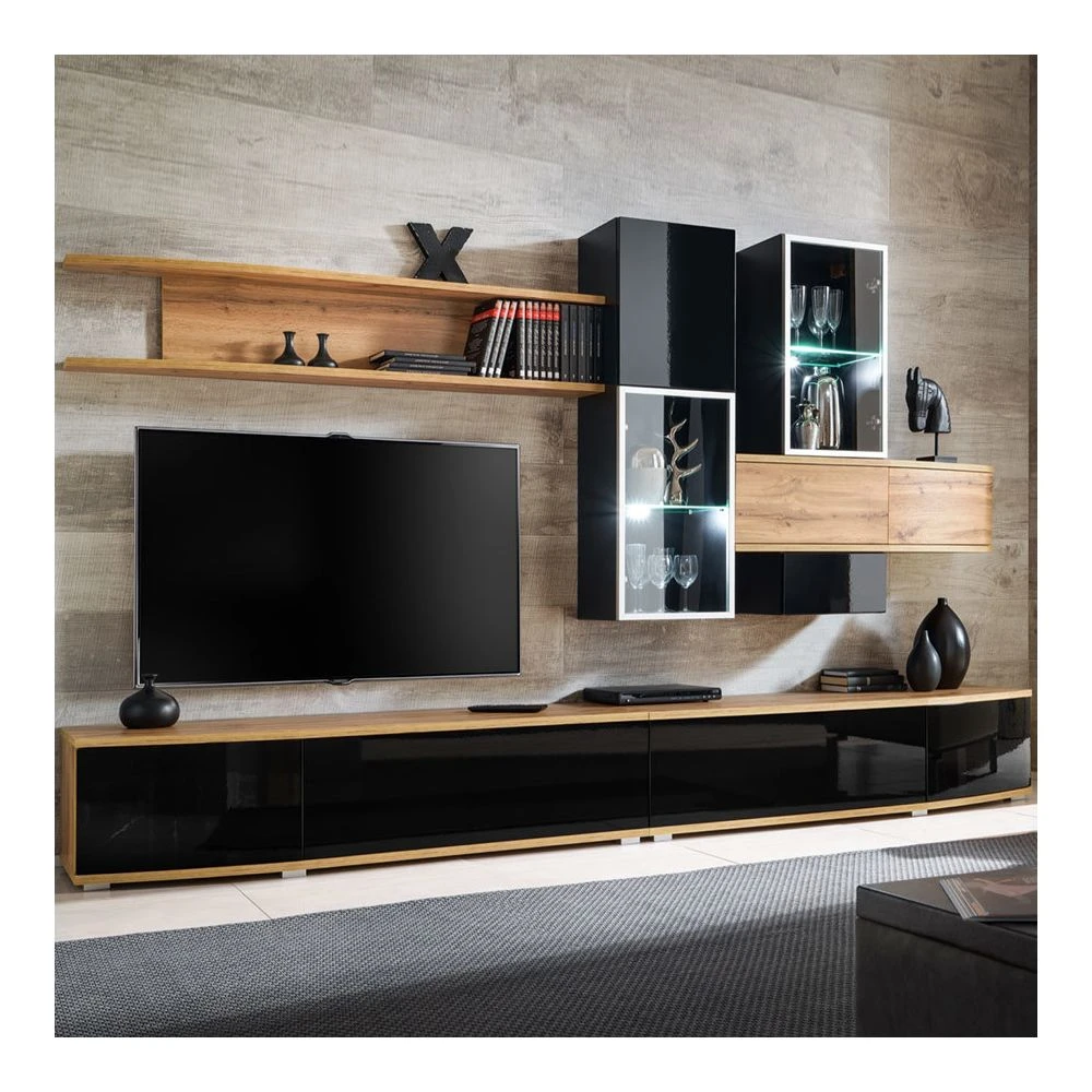 Points forts Nouvomeuble Ensemble meuble TV noir et couleur bois BAGNOLO
