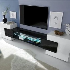 Points forts Nouvomeuble Meuble tv design blanc et noir laqué LUXOR