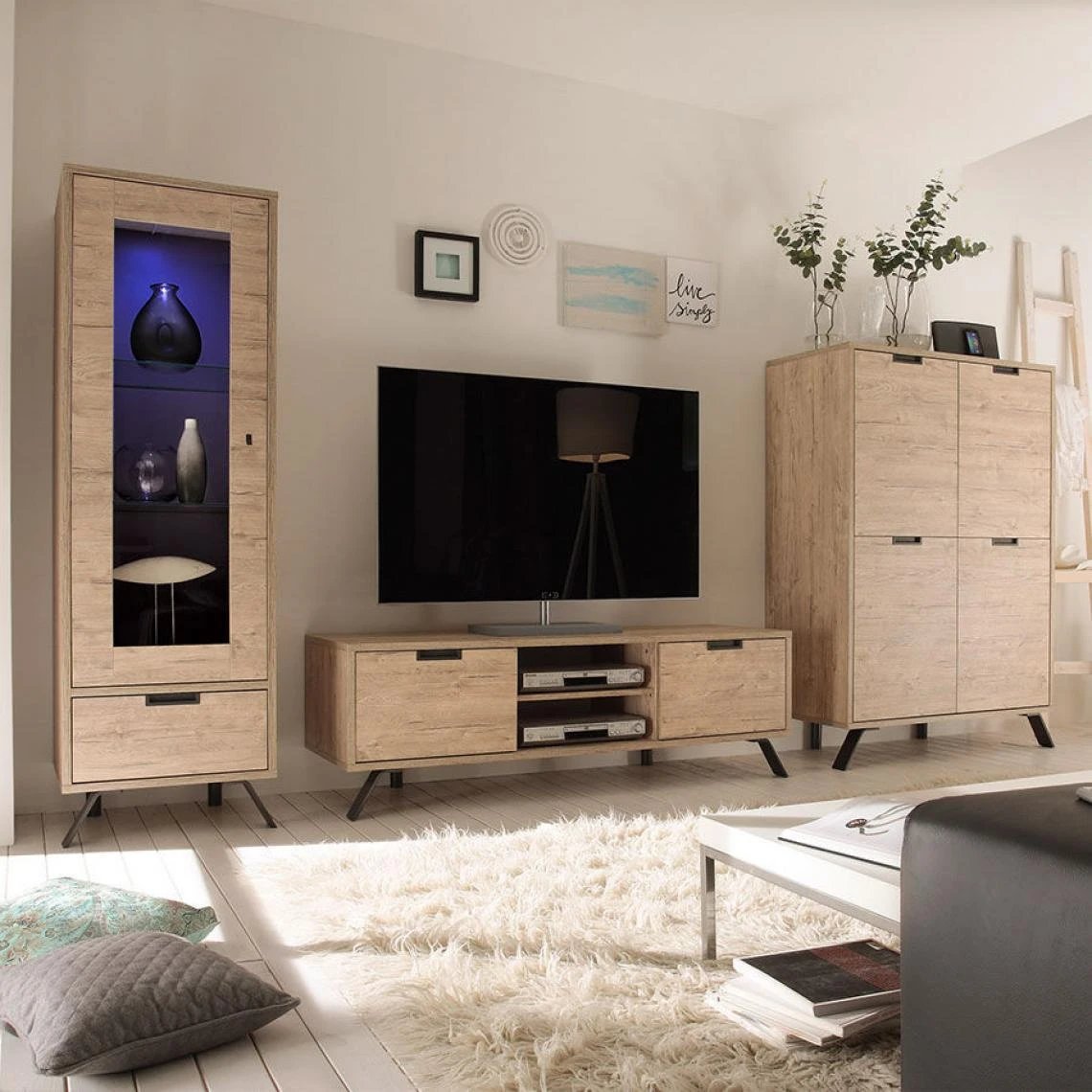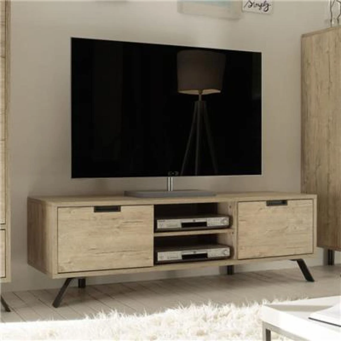 plein de style et vraiment lumineux, ce joli meuble tv fera beaucoup d’effet dans votre salon en mettant tout son caractère au service de votre décoration. de quoi faire bien des envieux parmi vos invités. la couleur bois clair de ce banc tv donnera à votre salon un aspect chaleureux et cosy où vous allez aimer vous reposer et prendre du bon temps. votre déco n’attend plus que ce meuble pour donner tout son potentiel ! n’hésitez pas à poser à côté de votre téléviseur une jolie lampe sur pied qui embellira encore l’ensemble tout en lui donnant une atmosphère bien particulière. nous en avons pour tous les goûts et tous les styles ! côté pratique, ce meuble saura se rendre indispensable en vous proposant deux niches où installer vos lecteurs et consoles, mais aussi deux petits placards qui accueilleront sans problème tout vos cd et dvd et autres affaires personnelles !