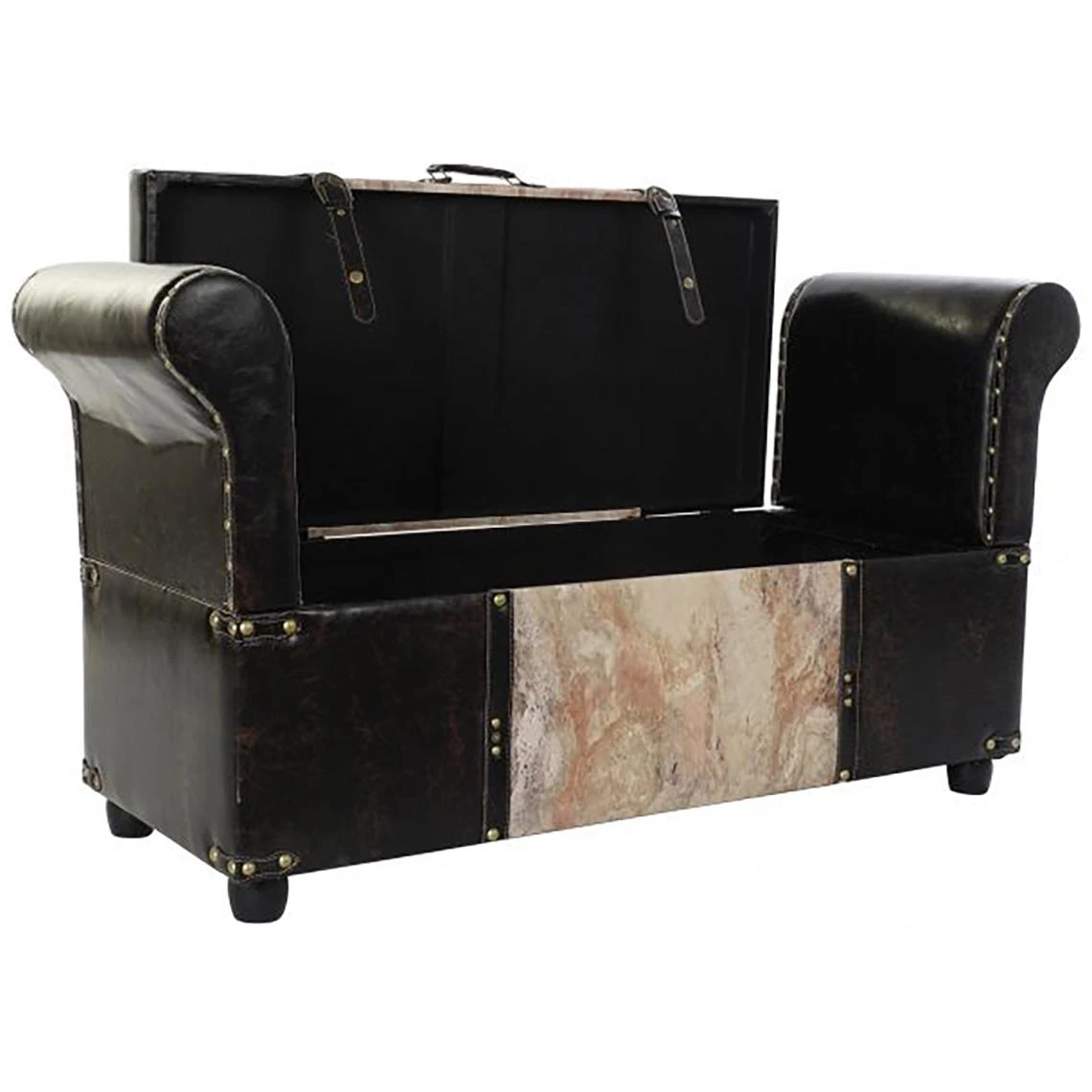 Banquette /coffre en MDF et PU coloris Noir/beige