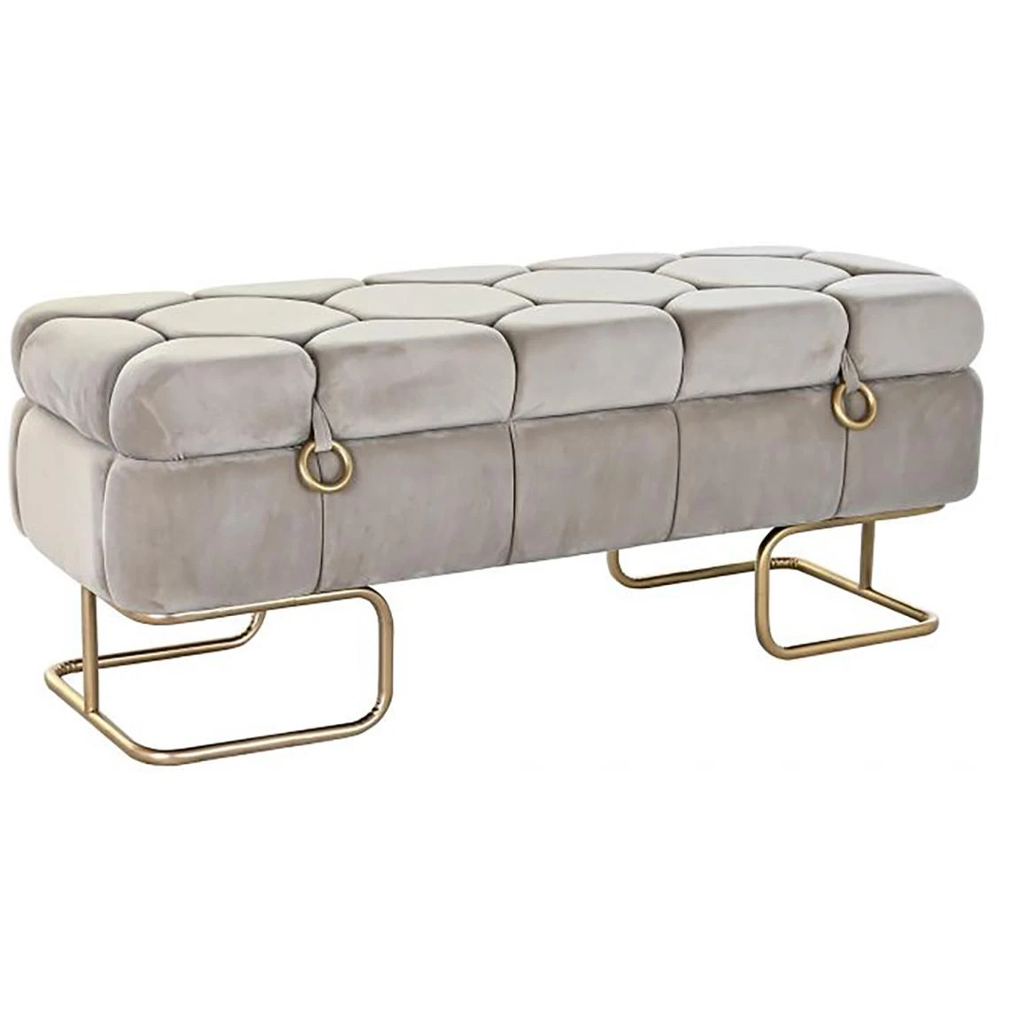 Points forts Pegane Banquette Coffre en métal coloris beige et pieds doré – Longueur 125 x Profondeur 45 x Hauteur 50 cm