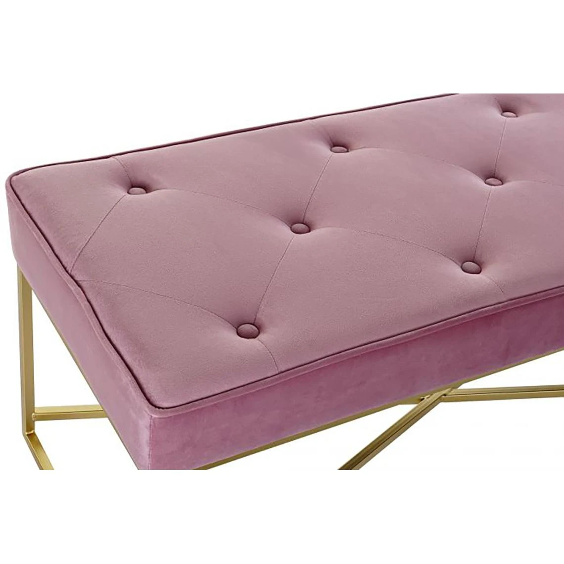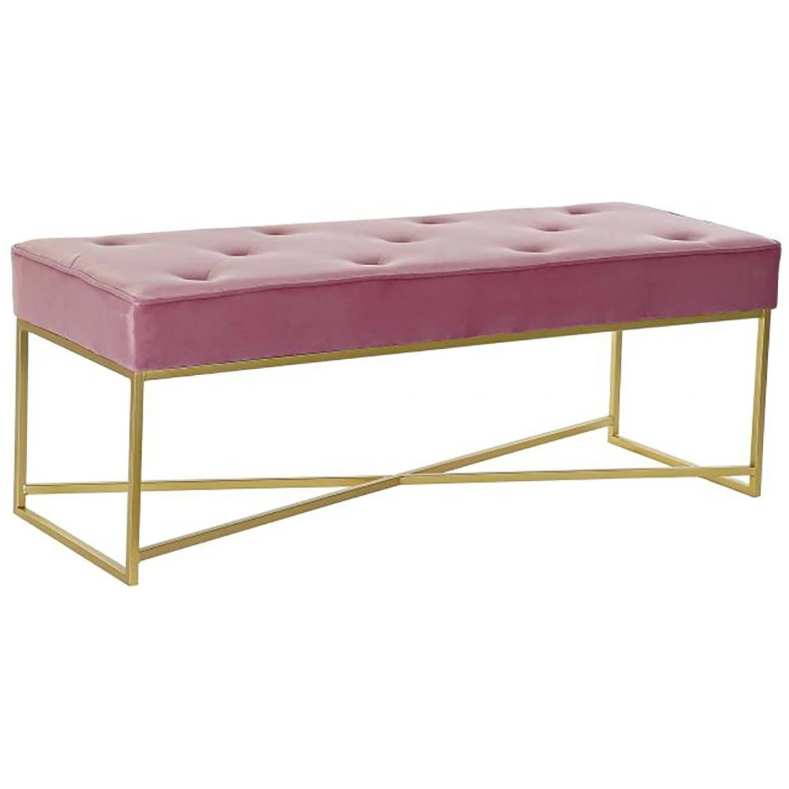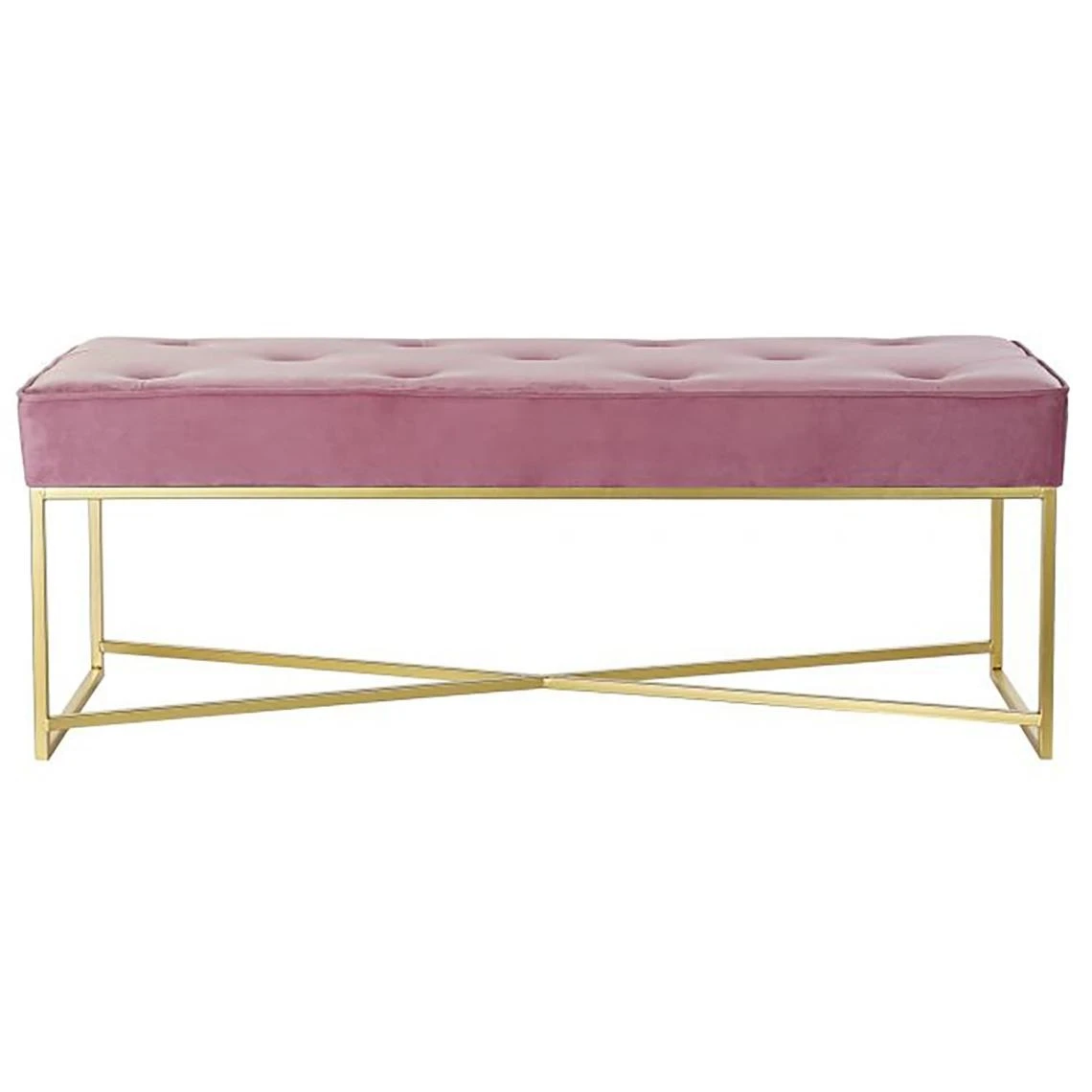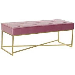 Points forts Pegane Banquette en métal coloris rose et pieds doré- Longueur 120 x Profondeur 45 x Hauteur 45 cm