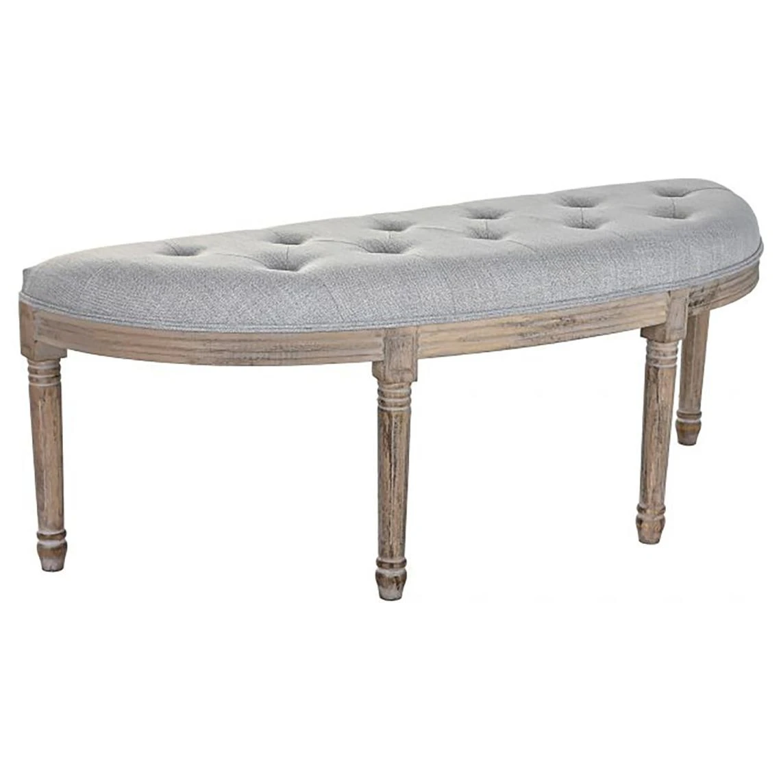 Banquette en bois de caoutchouc et velours coloris gris clair /Naturel