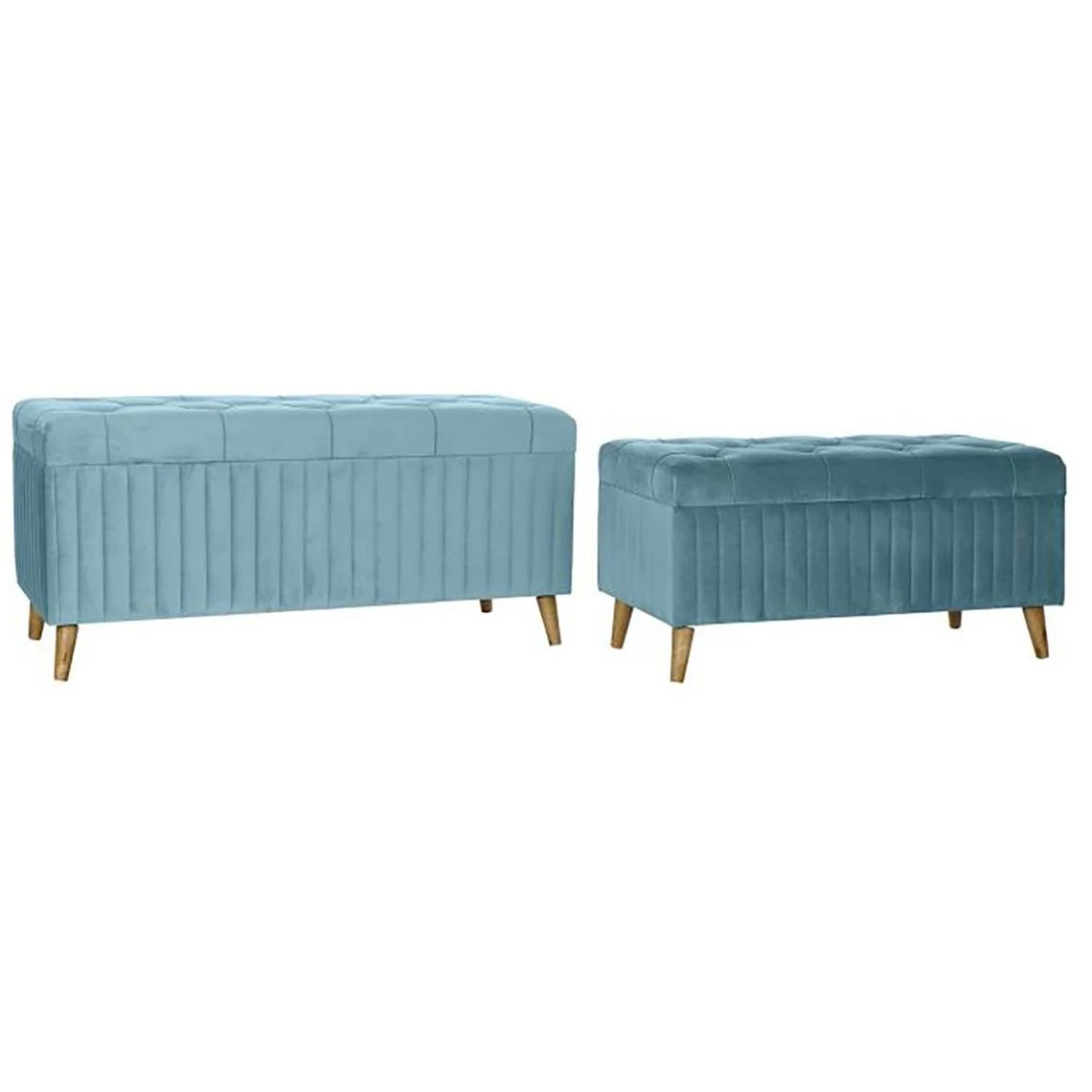 Ensemble de 2 banquettes Coffres finition Velours en polyester coloris Turquoise/Marron