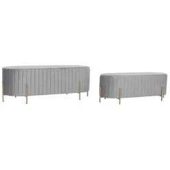 Ensemble de 2 banquettes en métal et polyester coloris Gris et pieds doré