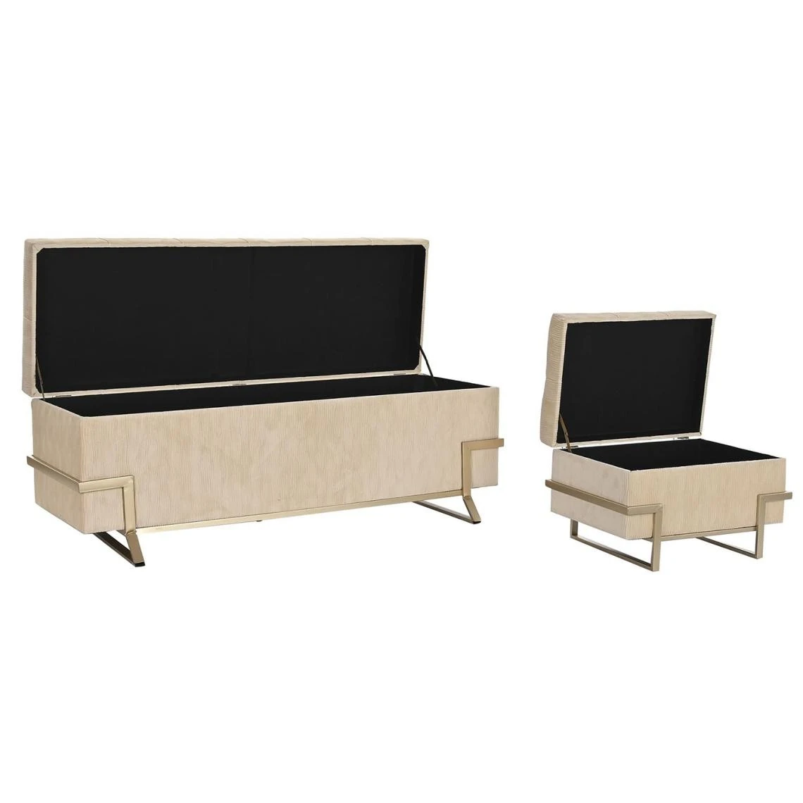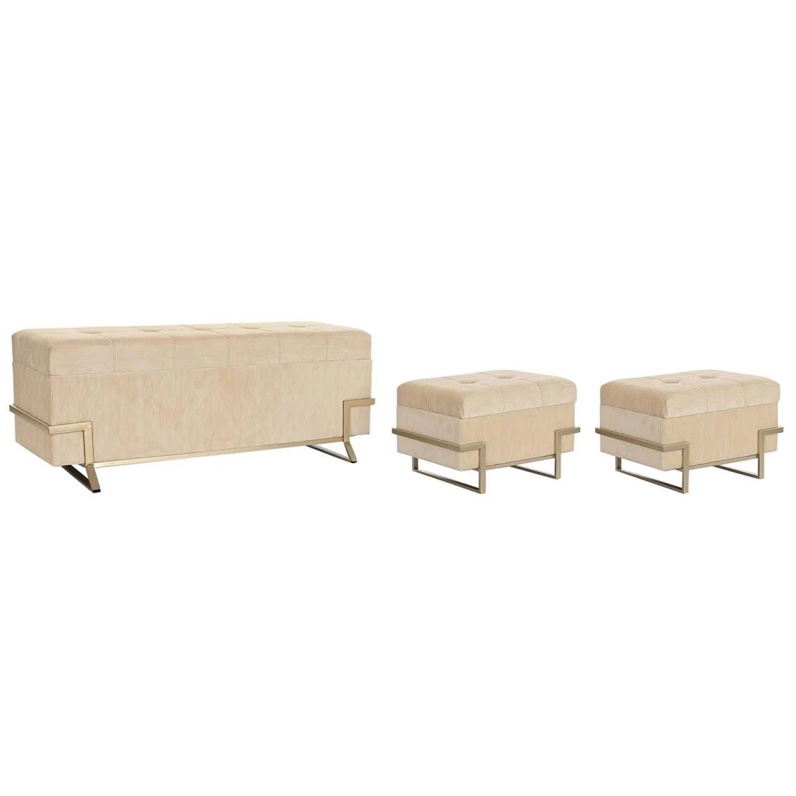 Points forts Pegane Ensemble de 3 banquettes Coffres en métal et velours beige
